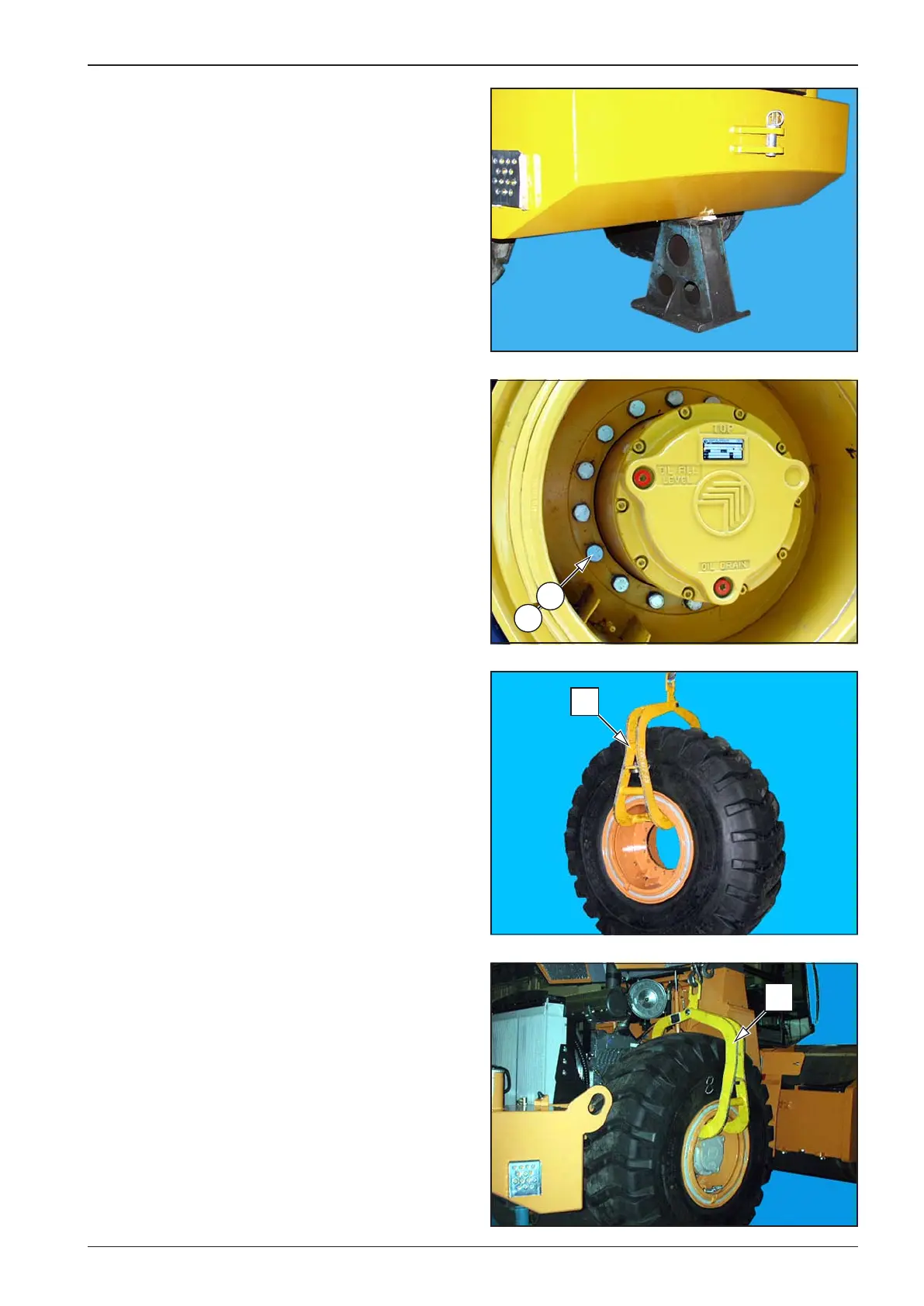 Hoist the rear frame of the machine, insert supports.