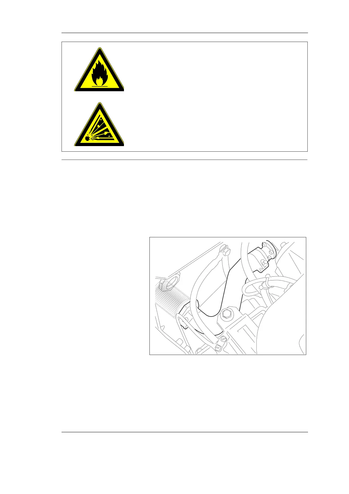 Hydraulic oil is inammable and can ignite easily. Oil soaked