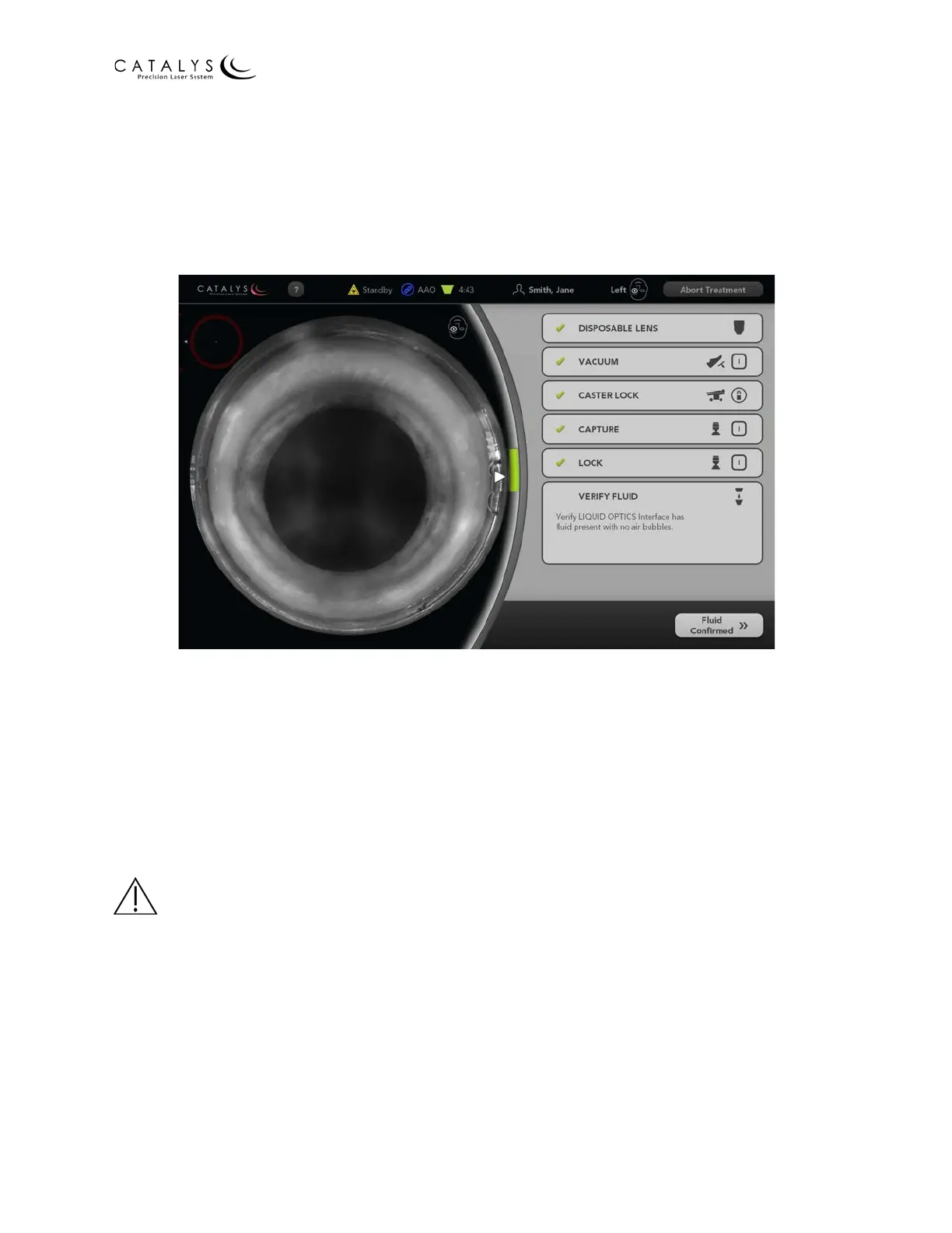 After verifying that the video image of the patient’s eye is sharp and clear, press the FLUID