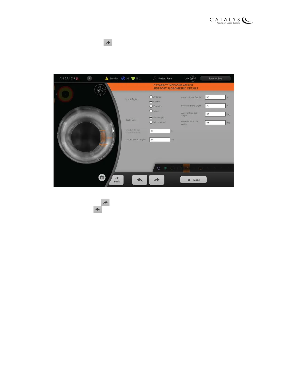 (Basic) Screen; or press the DONE button to return to the Cataract Incisions Review Screen.