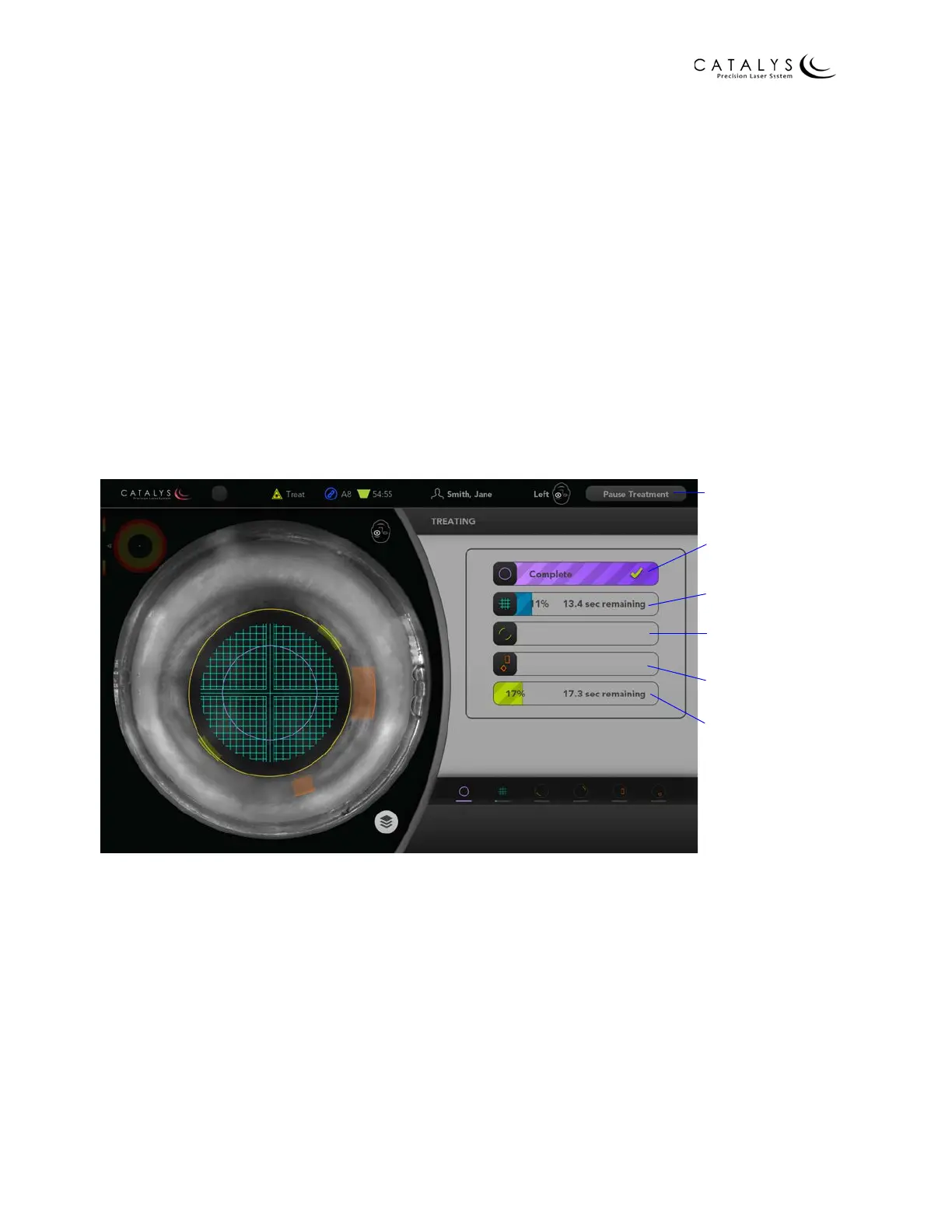 After initiating laser treatment, the Treatment Progress Screen displays. Separate progress bars