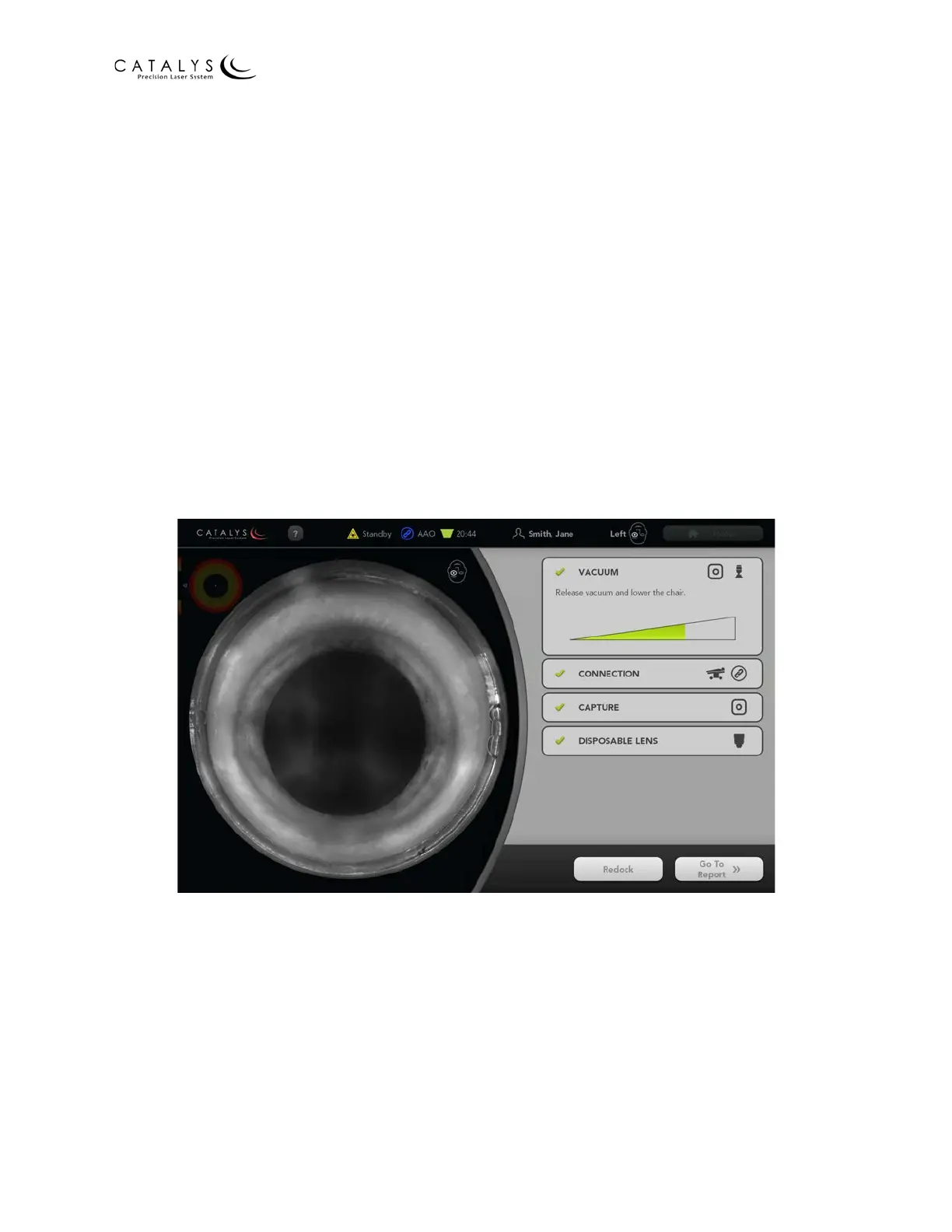 When laser treatment is complete, the system automatically proceeds to the Undocking Screen.