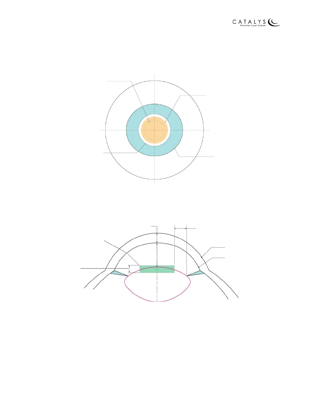 blue shading; capsulotomy diameter (top left) shown by dotted line within orange shading; and