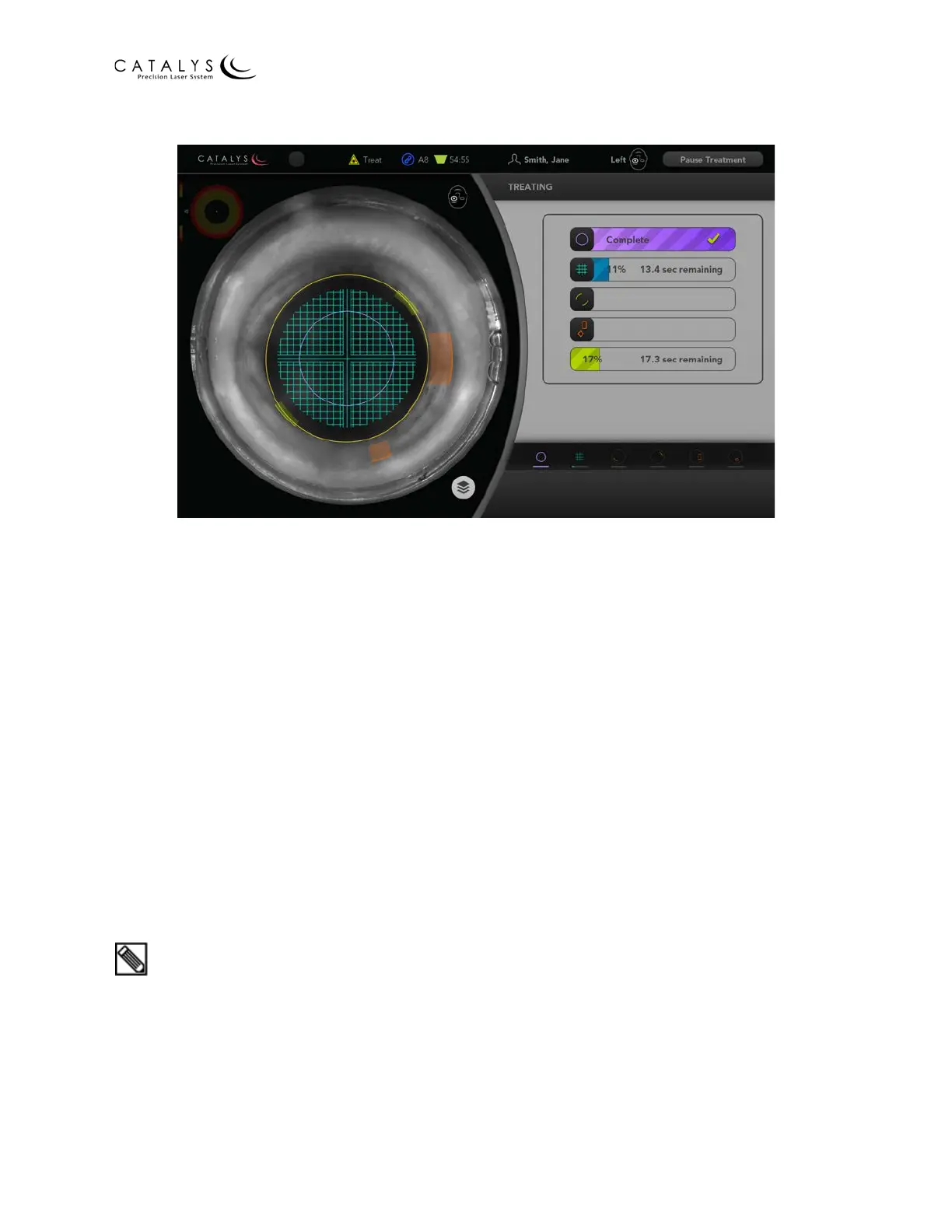 When laser treatment is complete, the system automatically proceeds to the Undocking Screen.