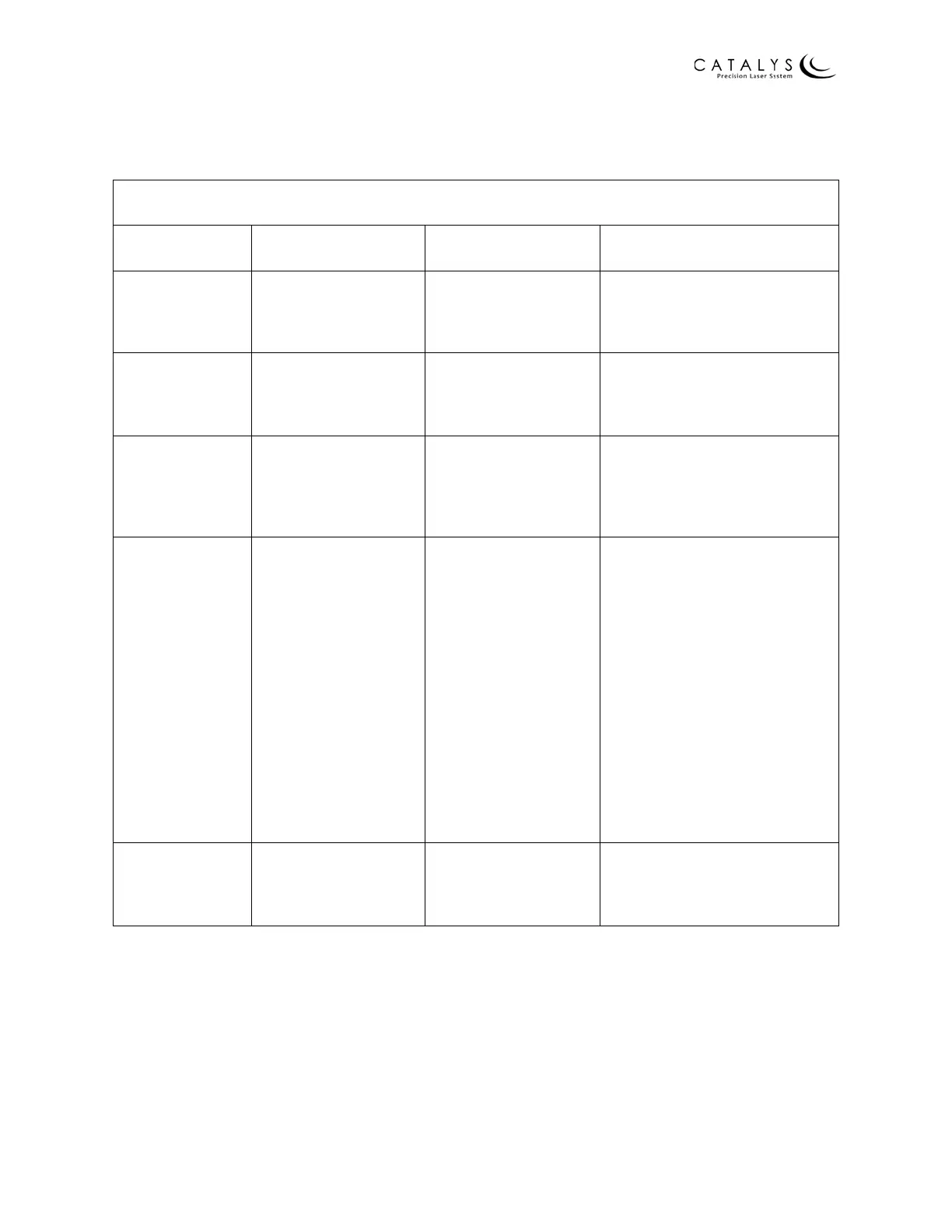 (This table applies to IEC60601-1-2, 4th Edition compliant CATALYS® manufactured on or after January 1st, 2019)