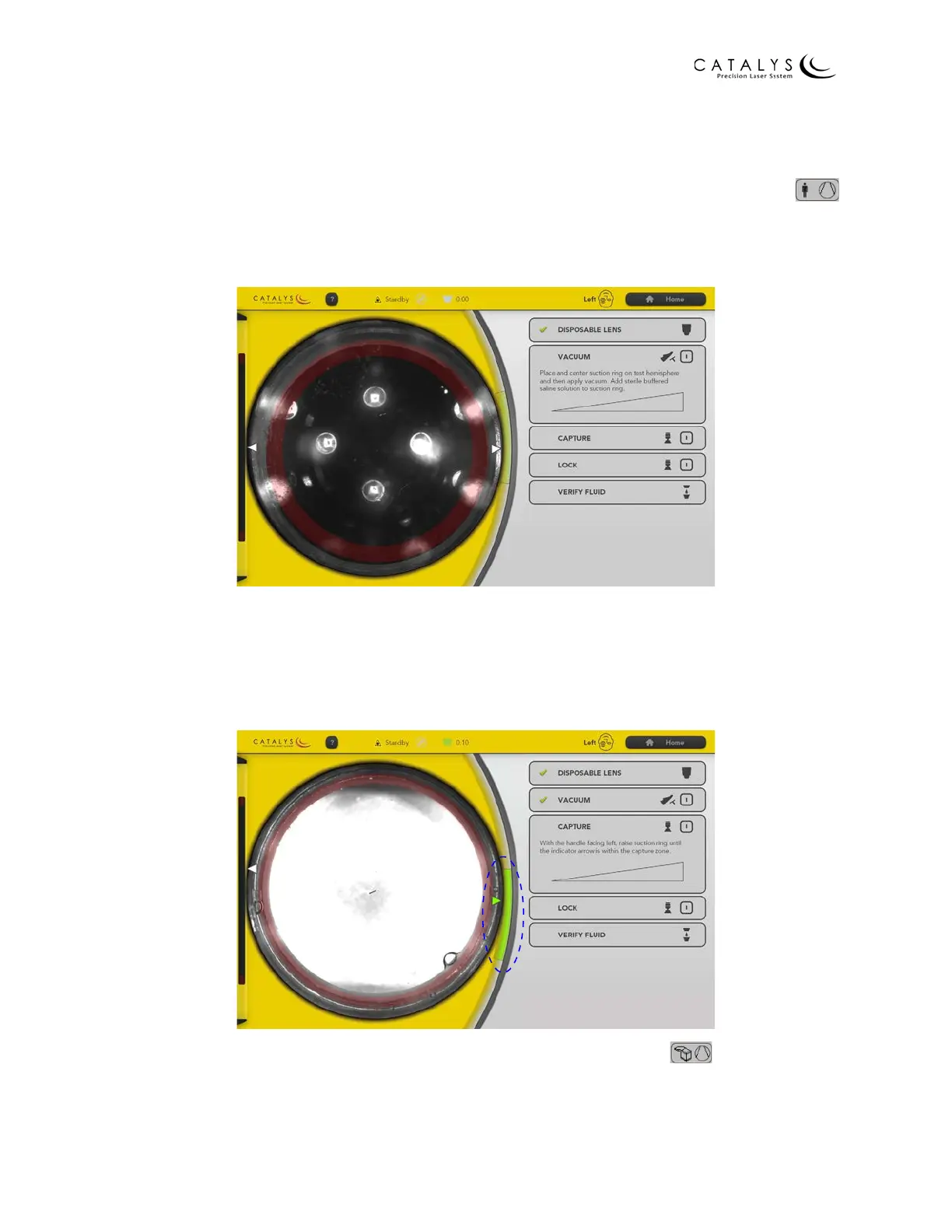 button on the docking keypad to capture the suction ring in the disposable lens.