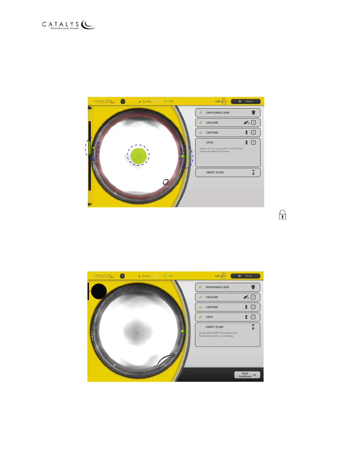 8. When the system detects that the suction ring has been captured, the Lock panel opens.
