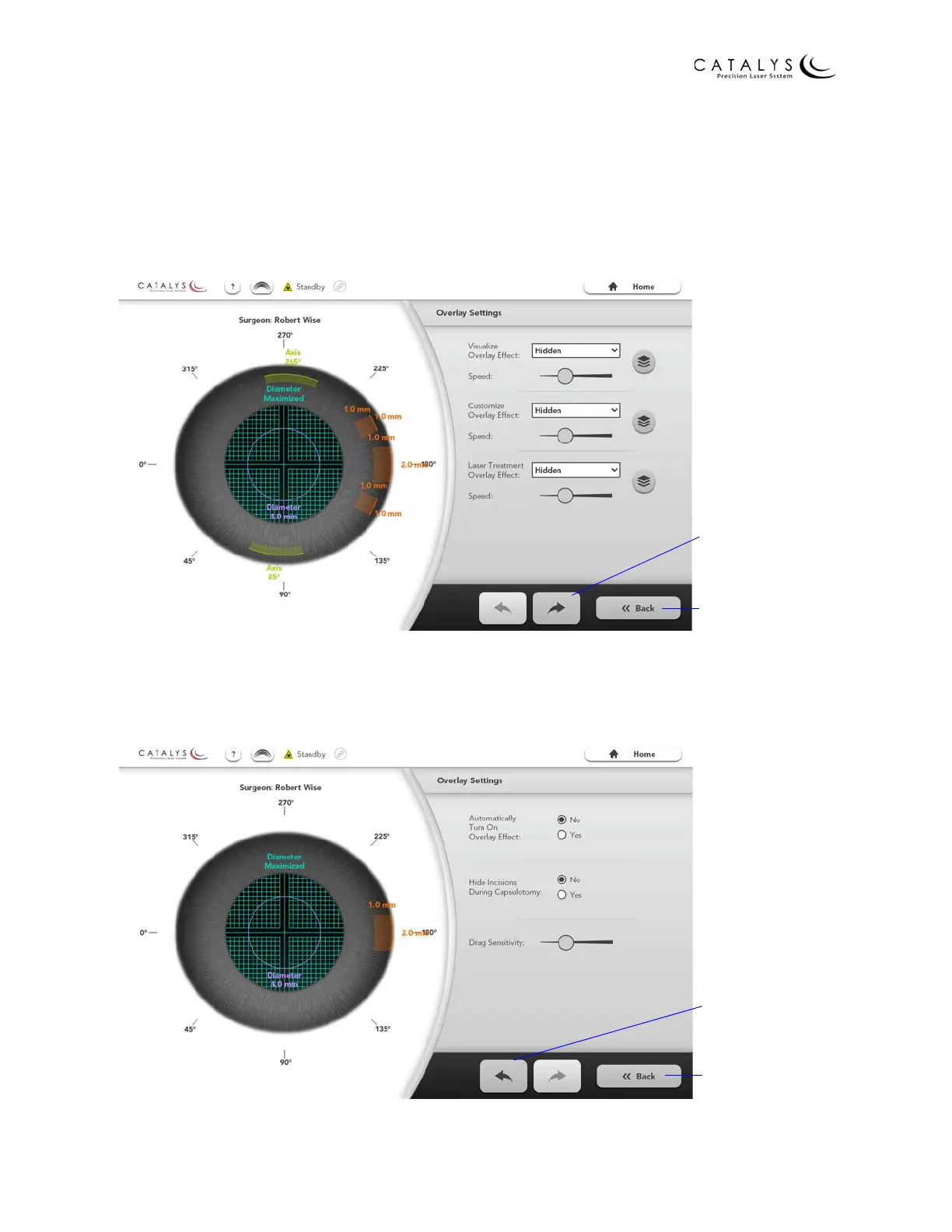 overlay effect; hide incisions during capsulotomy; and adjust the touchscreen drag sensitivity.