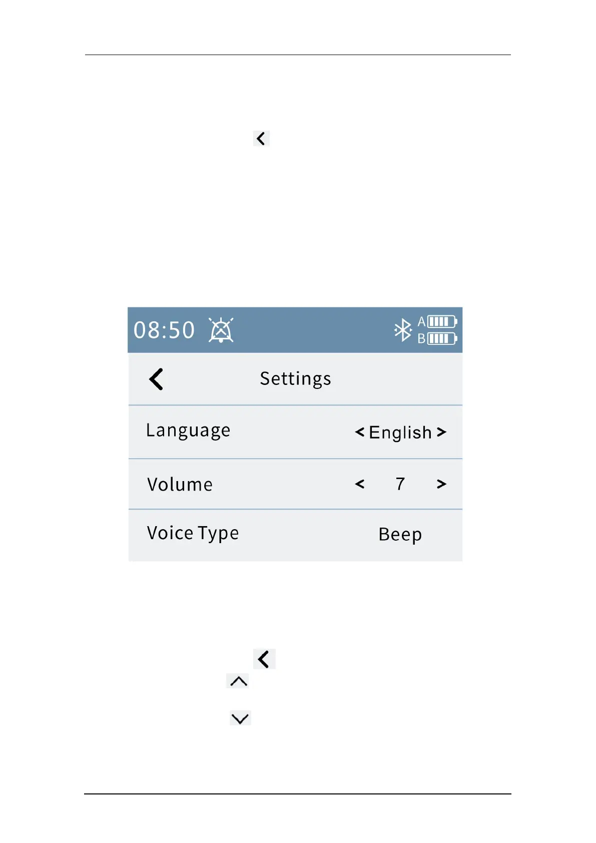 3. Press "<" “>”in the “Volume” column to adjust the voice volume.