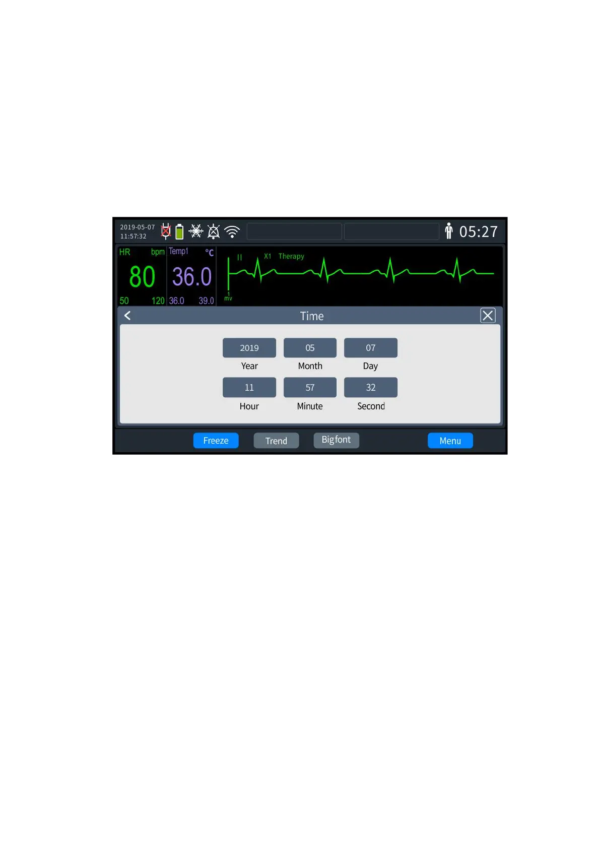 3. Once set up, exit the settings screen, and the Defibrillator Monitor will automatically