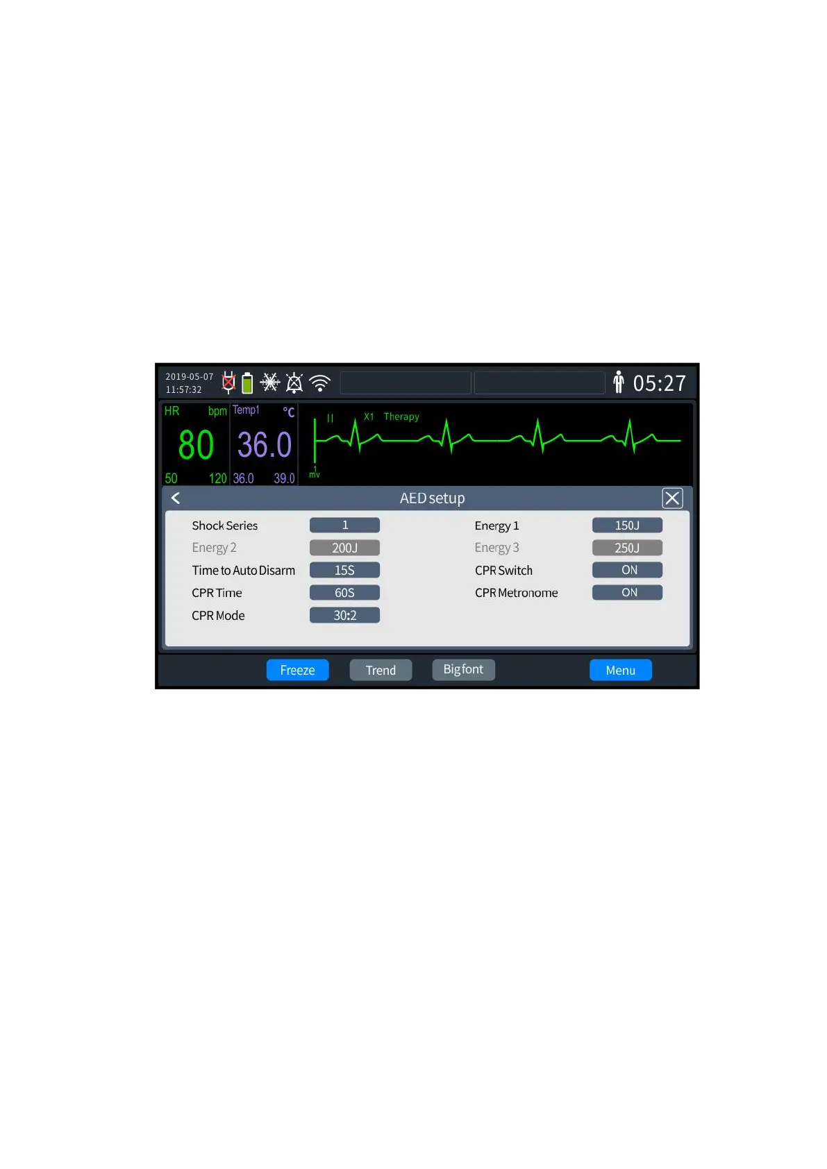 6. Select [CPR Time], which can be set to 30s, 60s, 90s, 120s, 150s, and 180s.