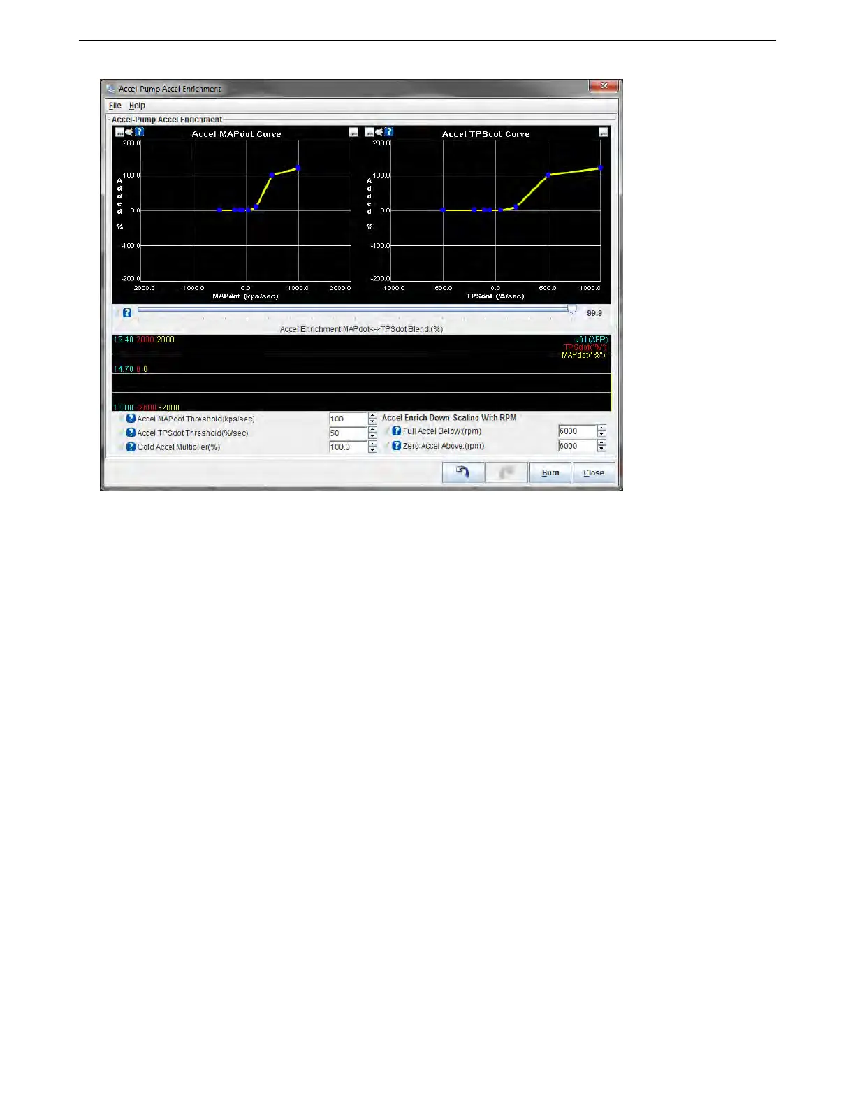 ratio, MAPdot, and TPSdot measurements to help you tune the acceleration enrichment.
