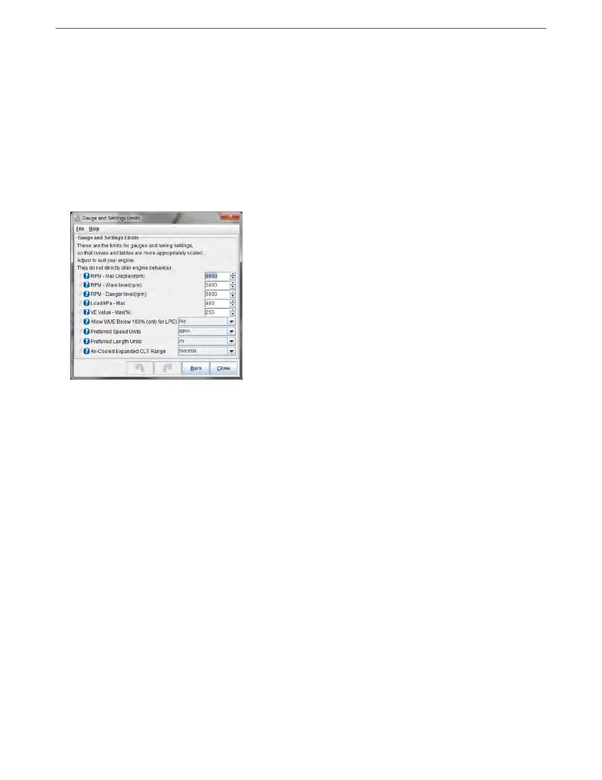 Allows you to specify RPM levels and maximum load values on the gauges, as well as the highest values you can