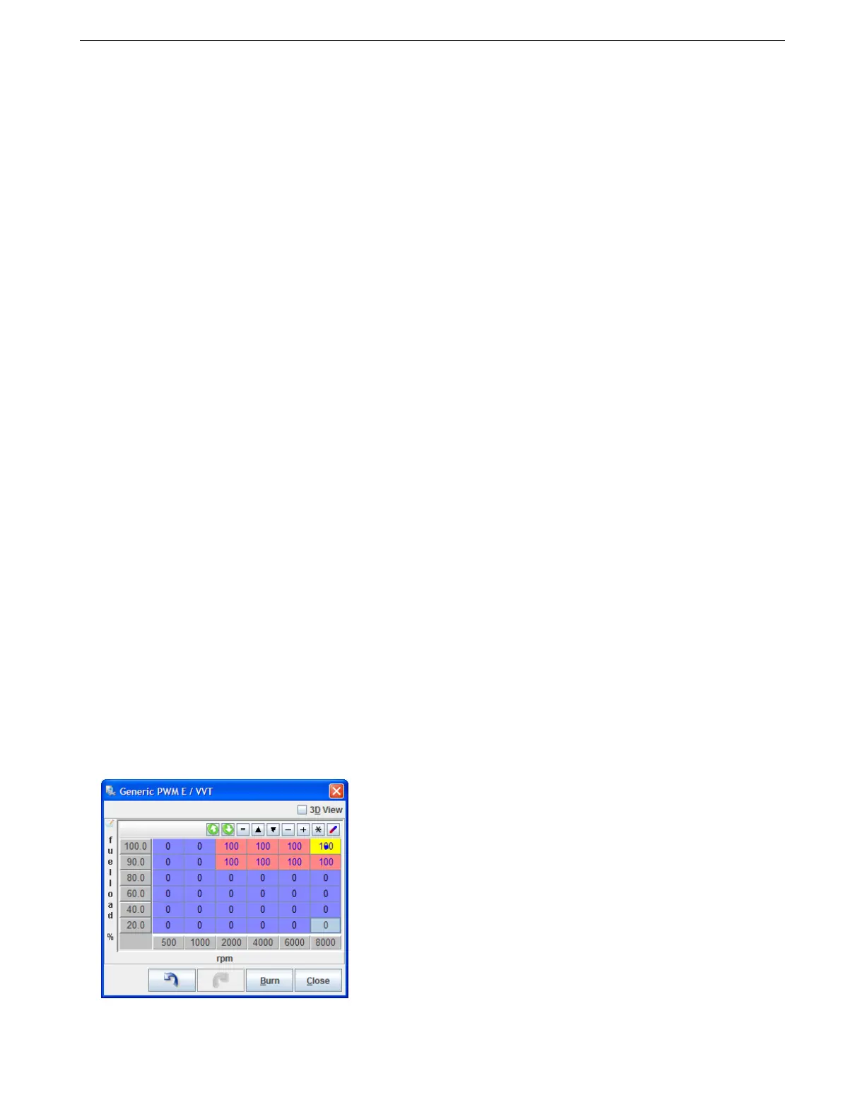 screen. In place of the angle target table, an on/off table is used. In this table, set 100 for cells where VVT should