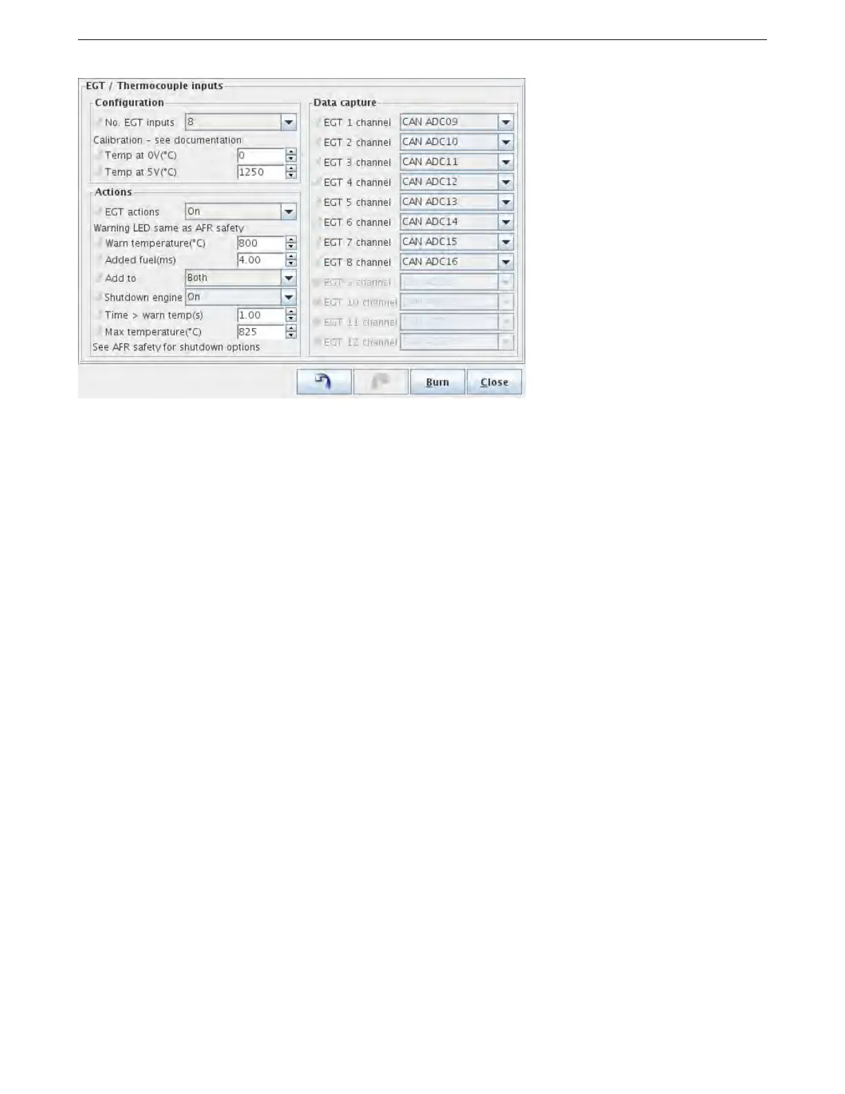 • Data Capture - here you specify the local or remote analogue channels that the EGT inputs are connected