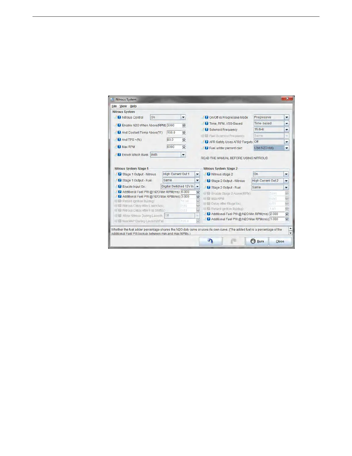 • Nitrous Control - Turns the system on or off
