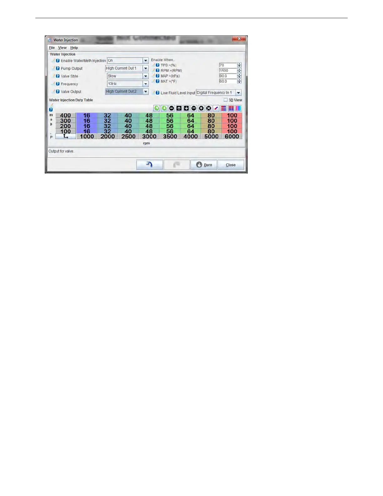 EGO control is not operating when water injection is active. Set the EGO control so that open-loop mode is used