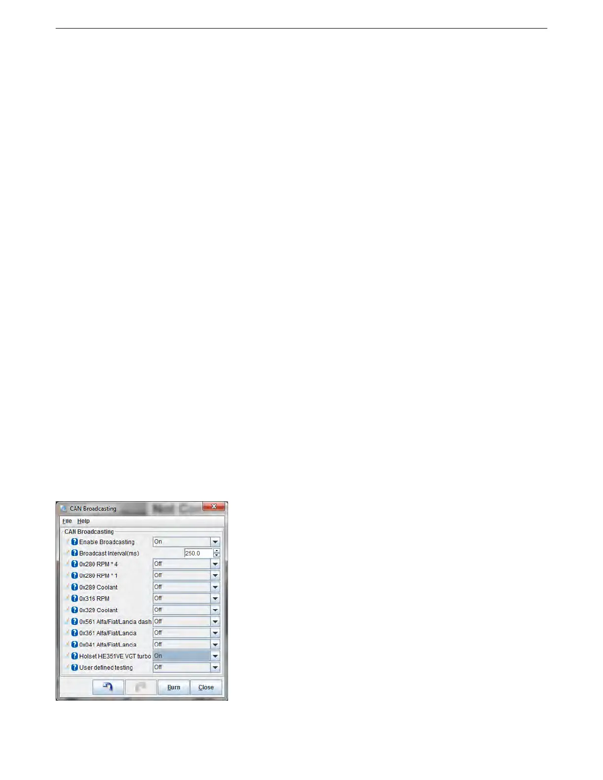 intervals. You can specify how often to transmit this information. Currently, the MS3Pro can broadcast RPM or
