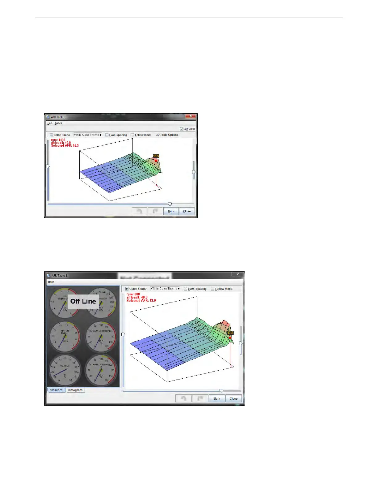 Many of the tuning maps can also be viewed under the 3D Tuning Maps menu. This brings up both a 3D table