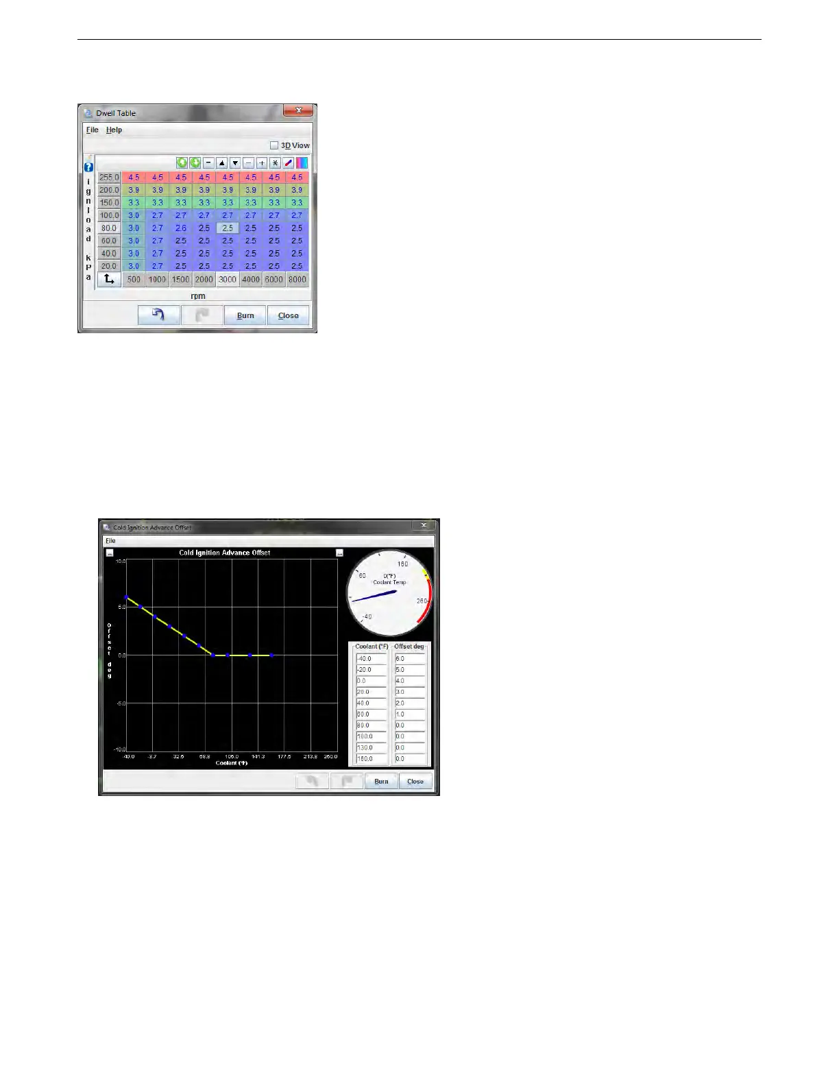 This table allows you to specify dwell (before battery voltage correction) as a function of RPM and ignition load.