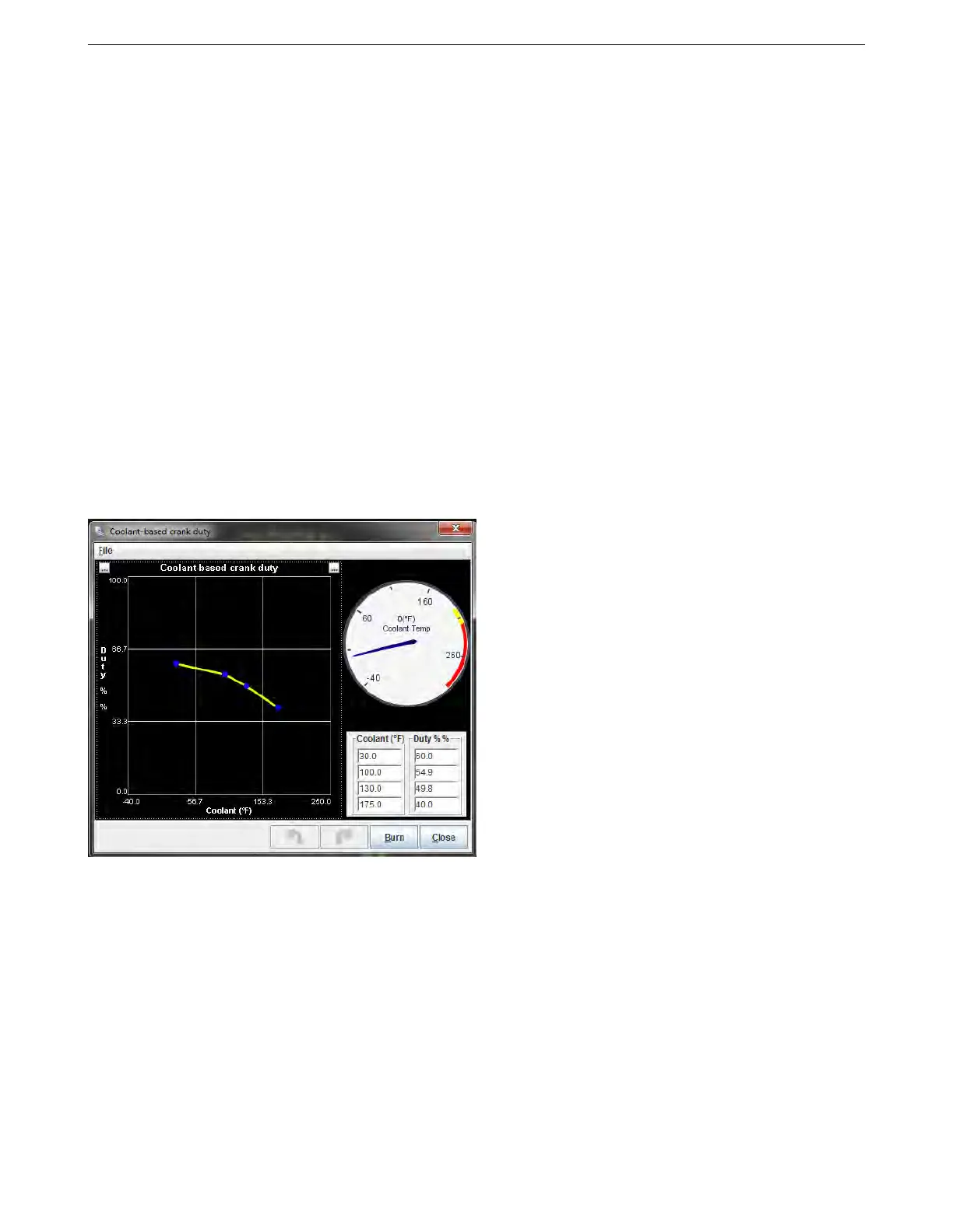 This screen gives how much IAC valve opening to apply when the engine is cranking as a function of temper-