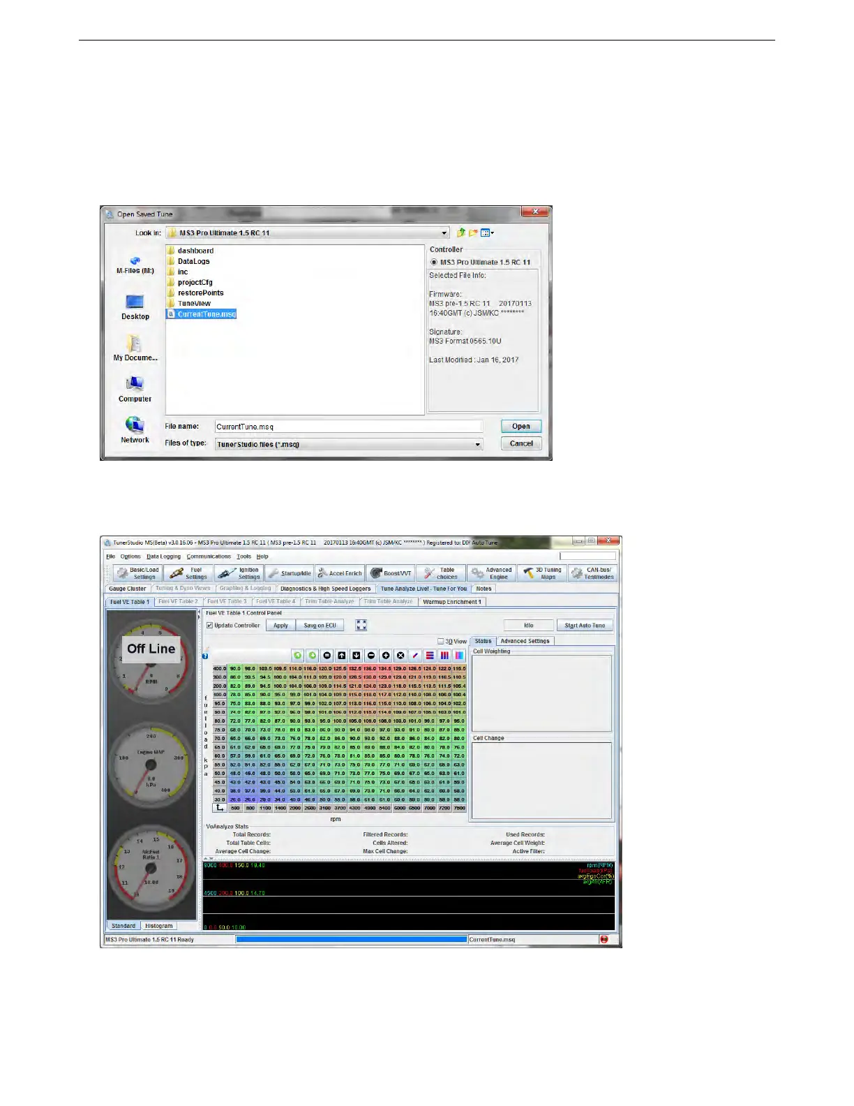 and TunerStudio online. If you open a tune without the ECU connected, TunerStudio will display the tune so you