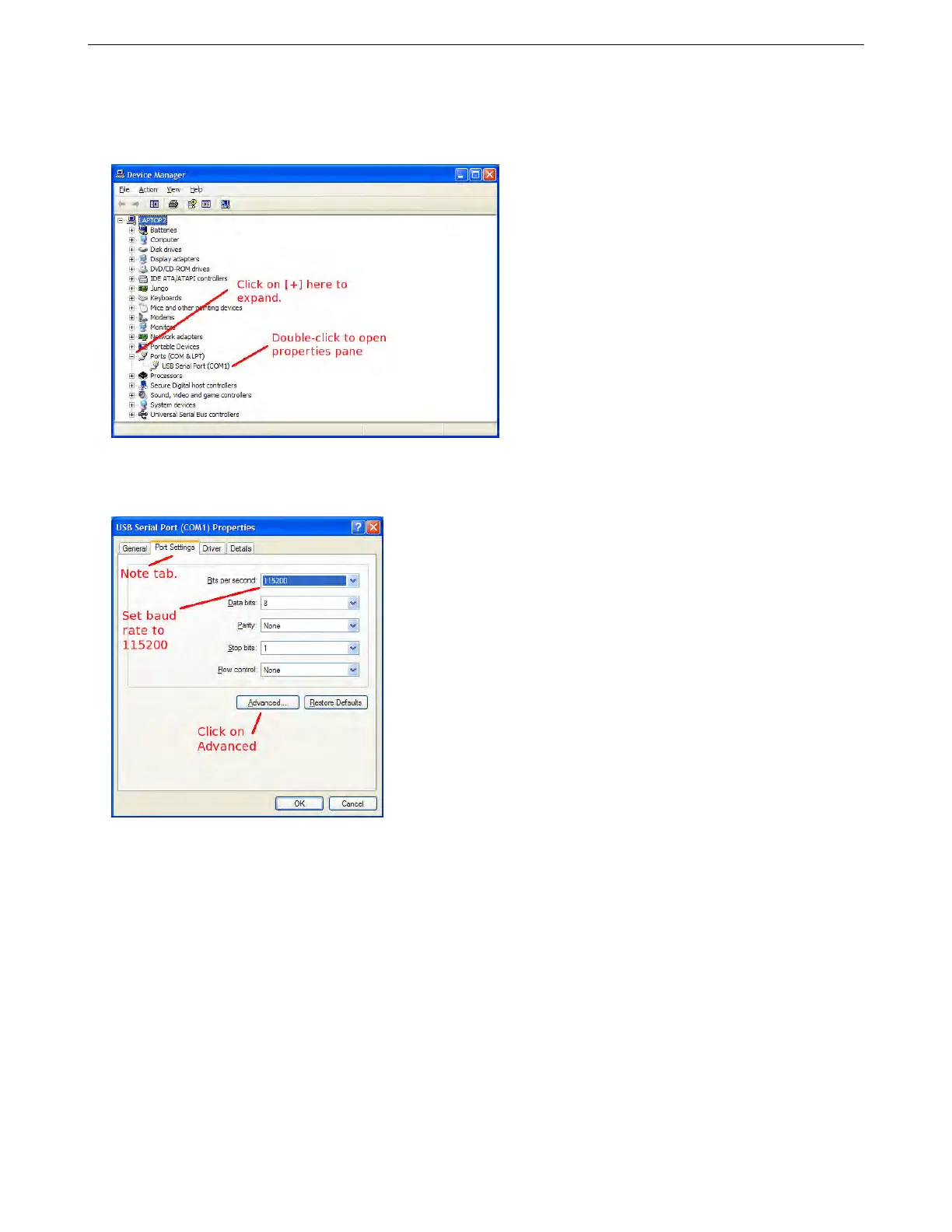 On the Port Settings tab, set the baud rate to 115200, then click on Advanced.