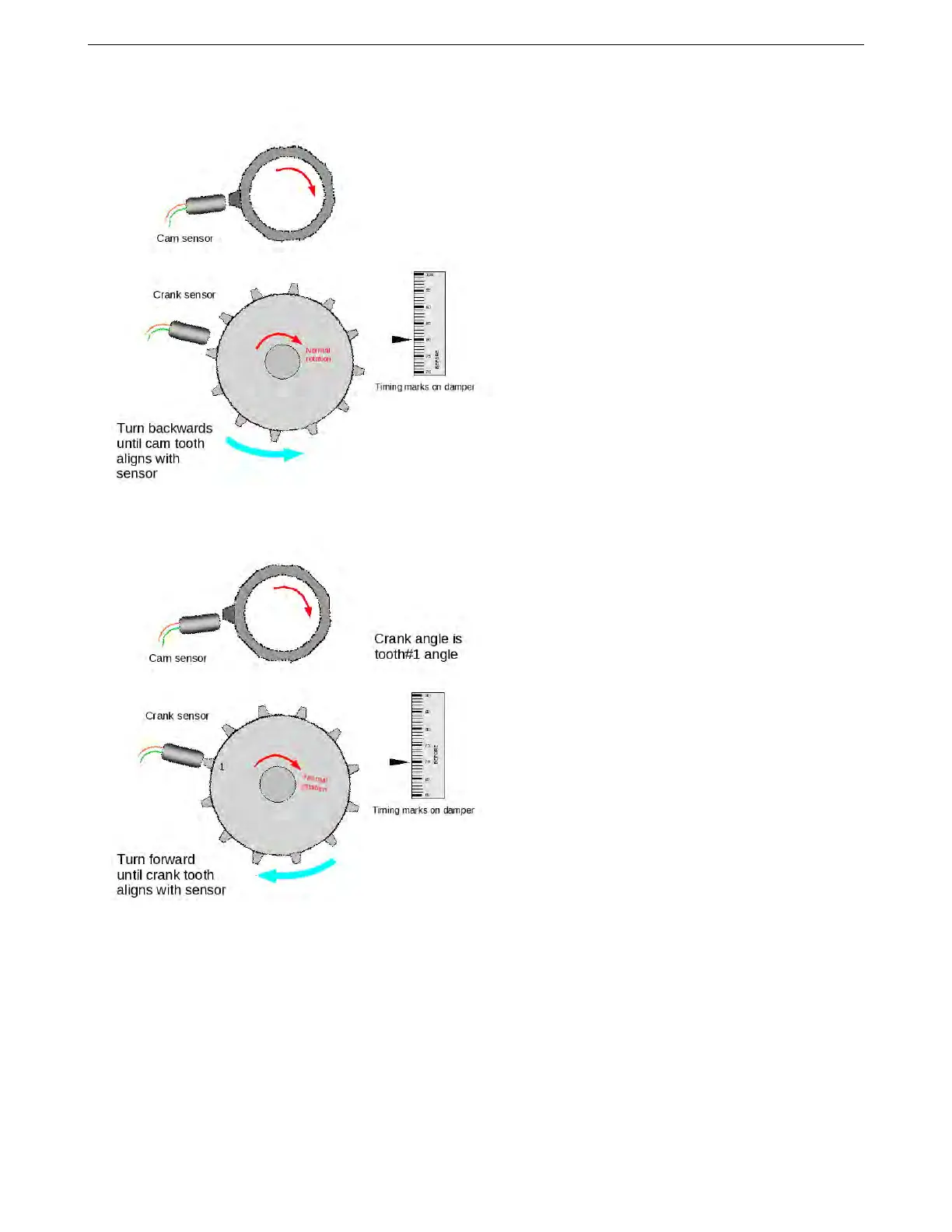 Now rotate the engine forwards until the next "crank" tooth aligns with its sensor. The crank angle now is the