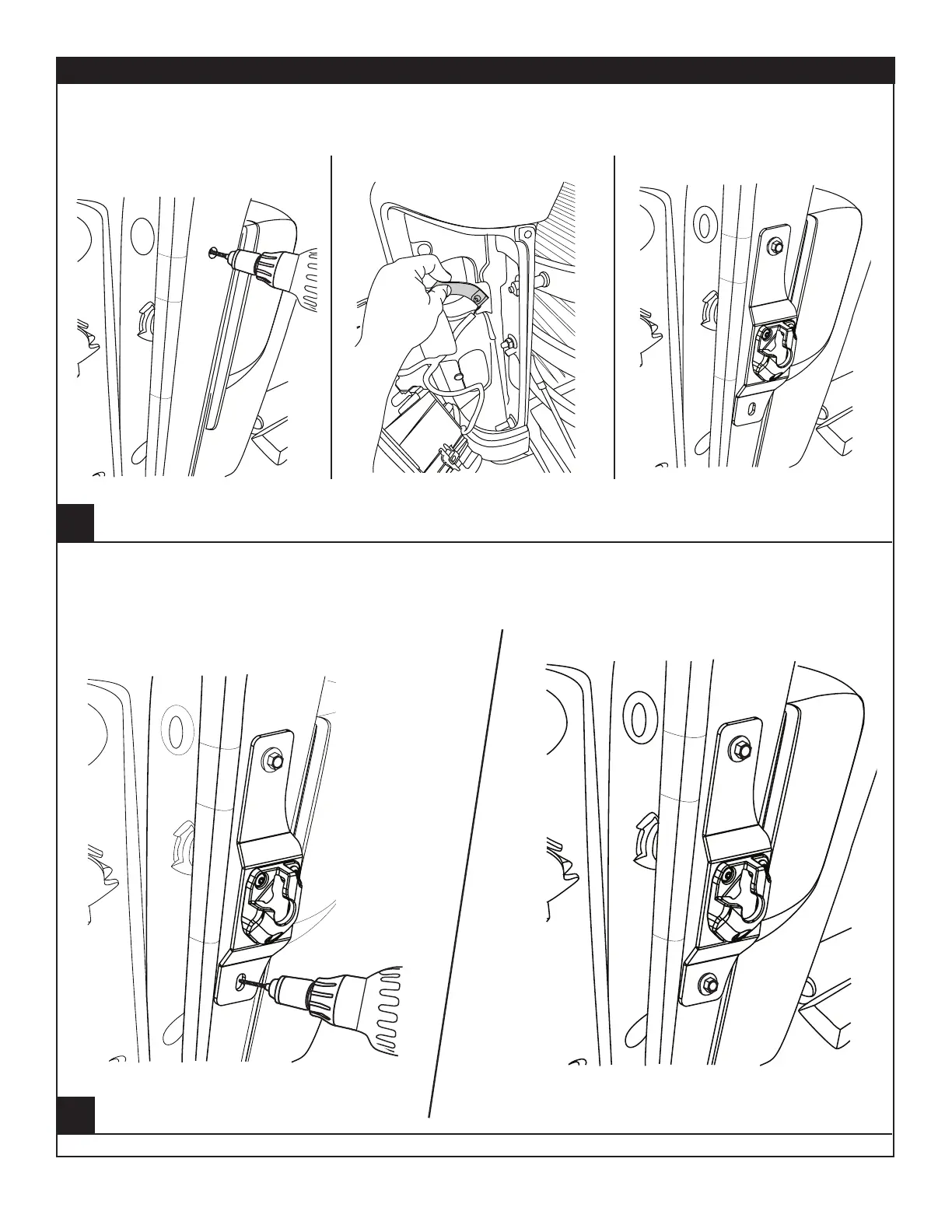 Enlarge hole in D-Pillar with 21/64” drill bit. Fasten the Quick Mount Bracket to the D-Pillar with one M8 Hex