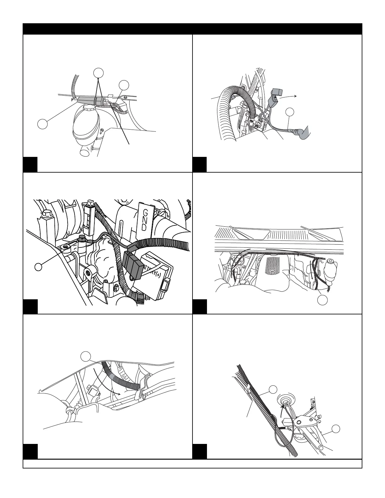 Route long end of wire harness above engine