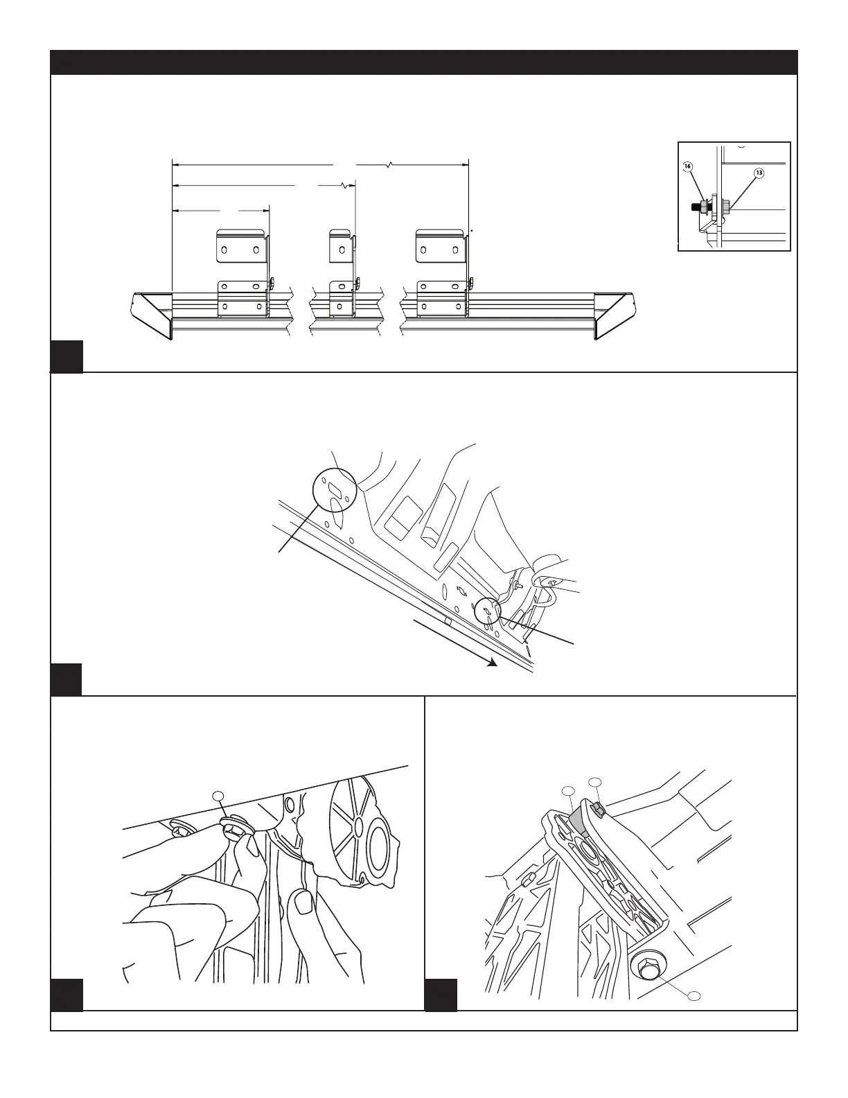 Insert and position Carriage bolts (17) into slot on rail (4). Insert from either end of rail. Using Flange Nuts
