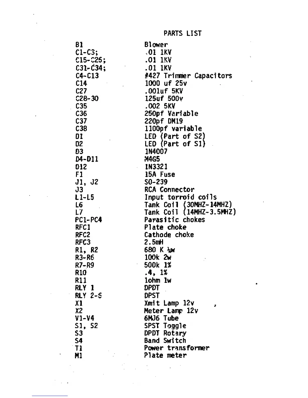 PARTS LIST