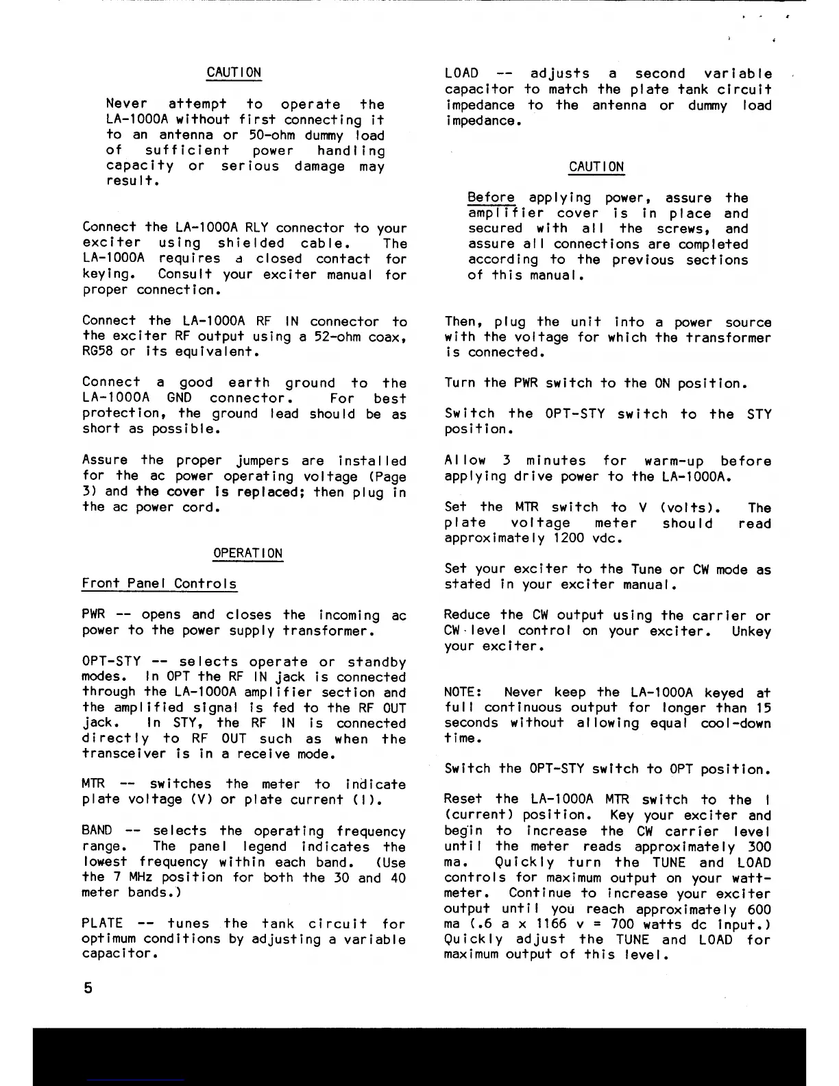 Amp Supply LA-1000A - Front Panel Controls; Control Descriptions; Operating Procedure