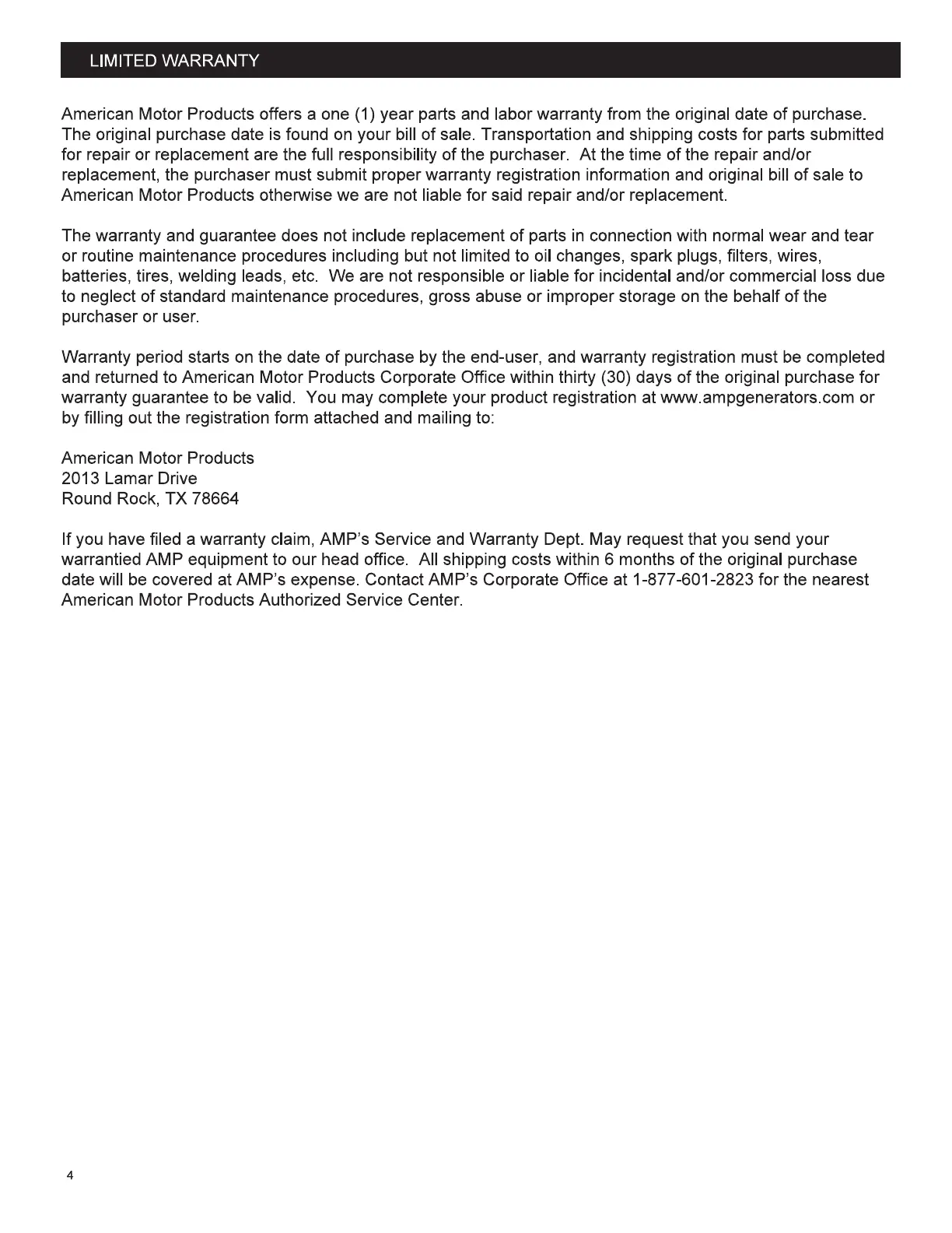 AMP COMMAND FLOW 3000 - Limited Warranty