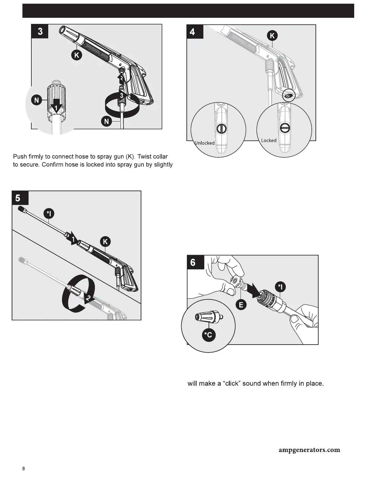 Attach nozzle (E) and Rotary nozzle (*C) into end of
