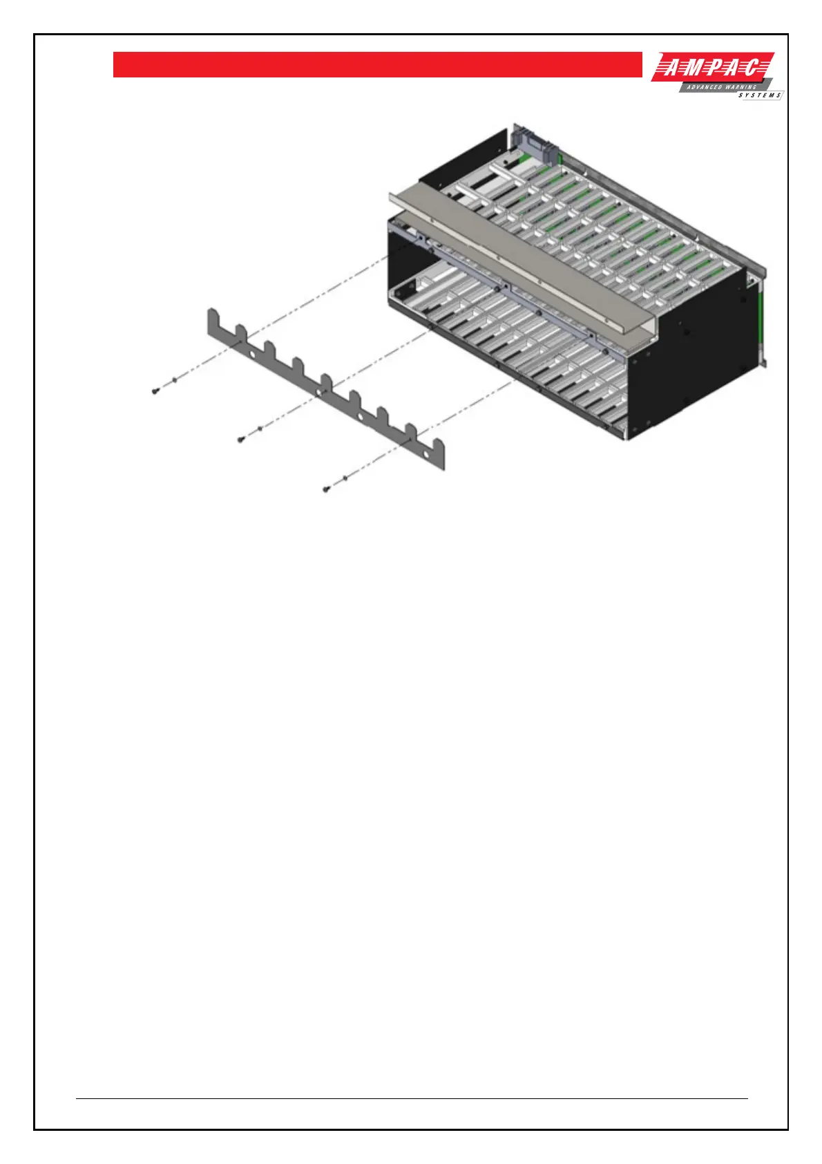 view shows the cabling ducting located on top of the rack and the retaining plate for the cards (fitted to