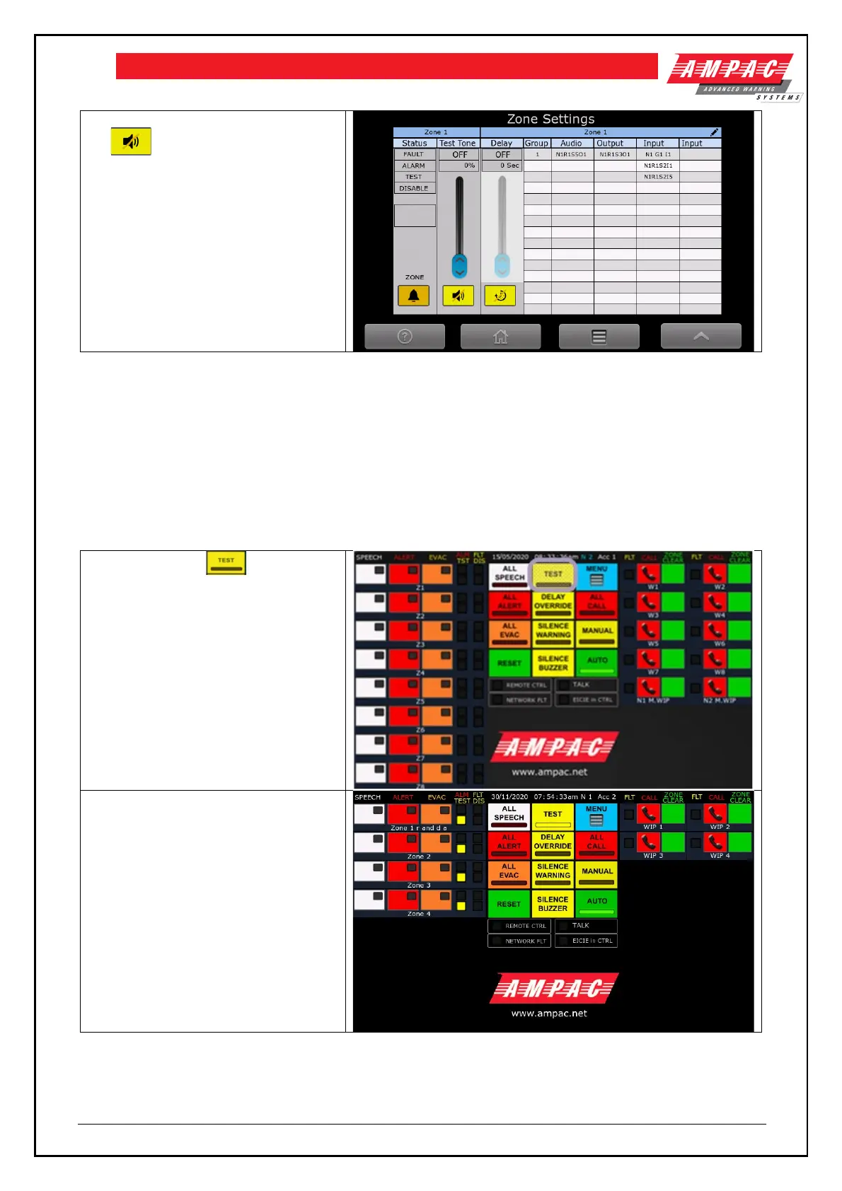 The emergency zone TEST indicators are illuminated steady. Refer to section 5.1.12
