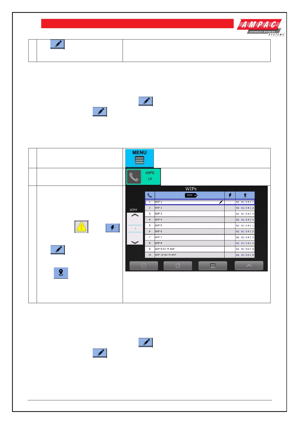 To access the WIP screen, the following controls are activated
