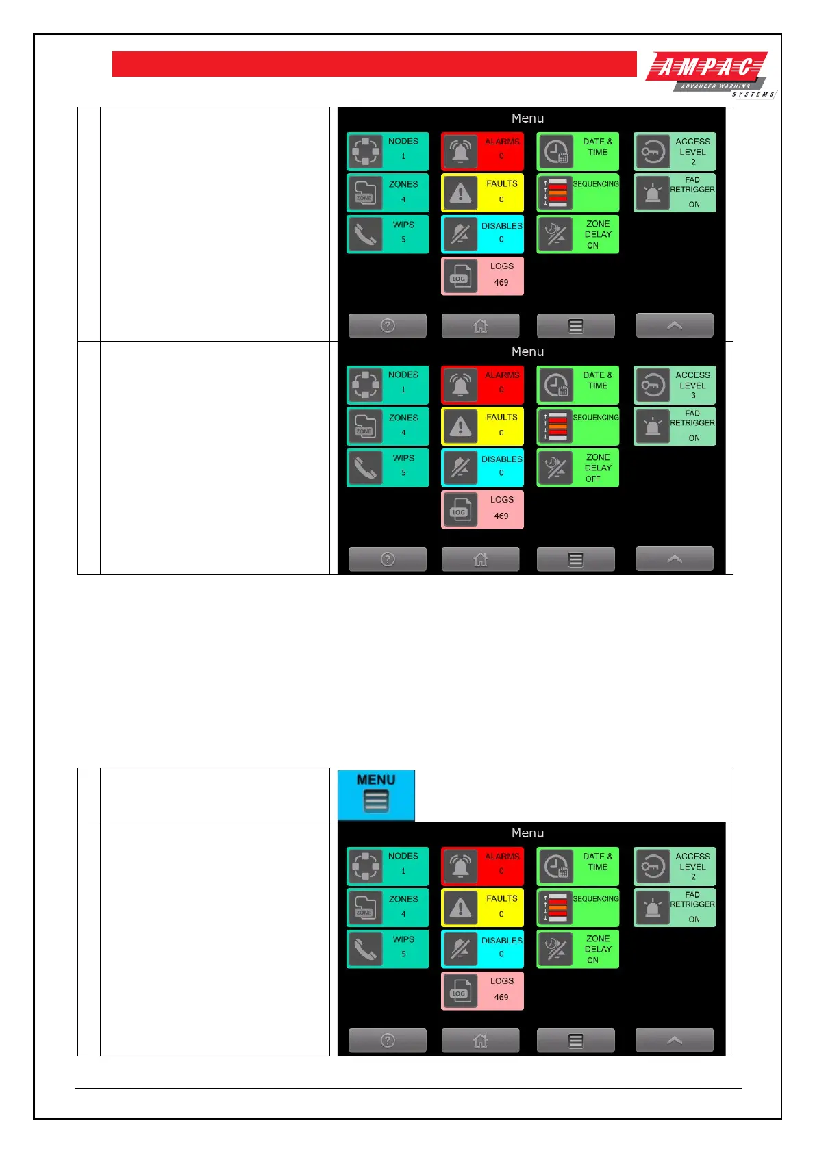 Menu Screen – Showing the access