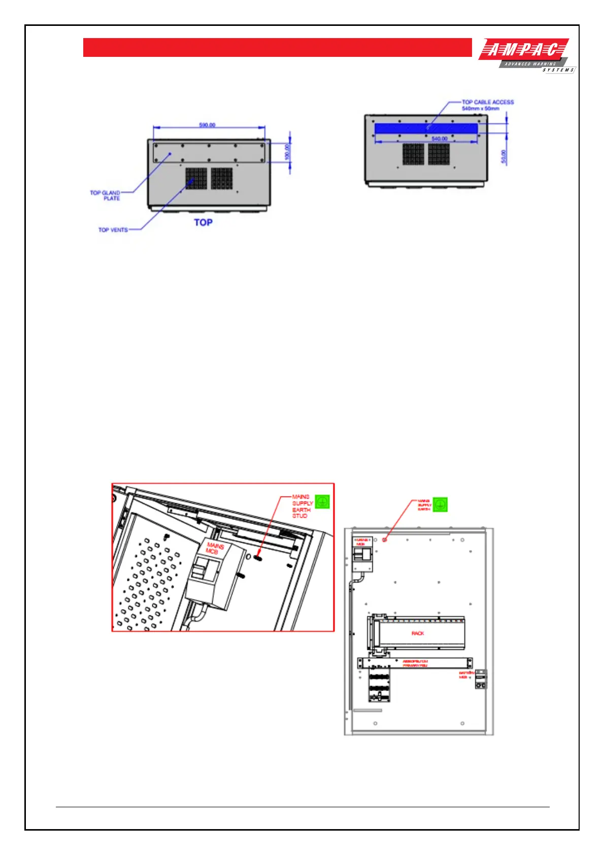 Figure 7-6 13U Cabinet - Top view showing gland plate and cable entry