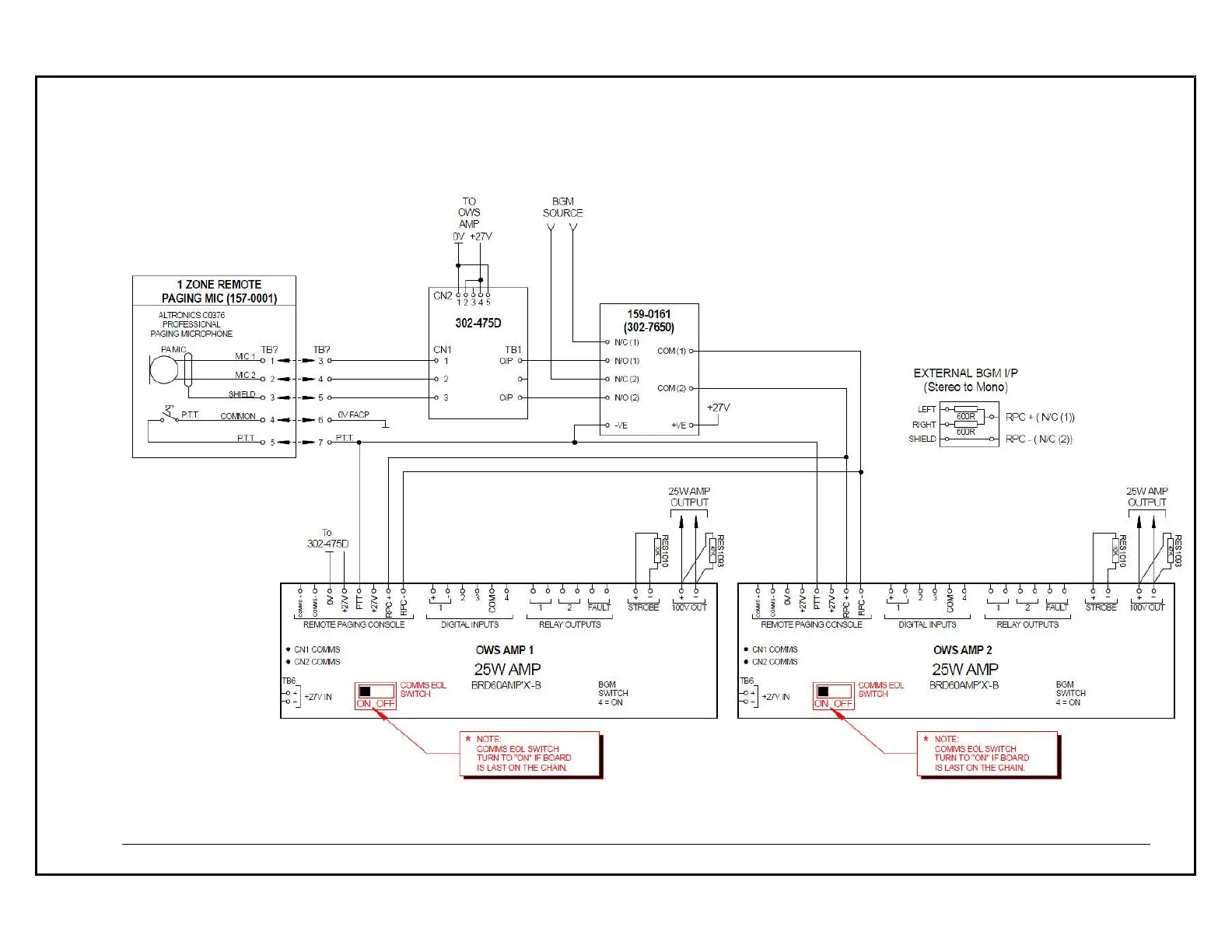 Note the use of the 302-475D pre-amp when using the 1 Zone paging MIC. The 302-475D is not fitted in the MIC.