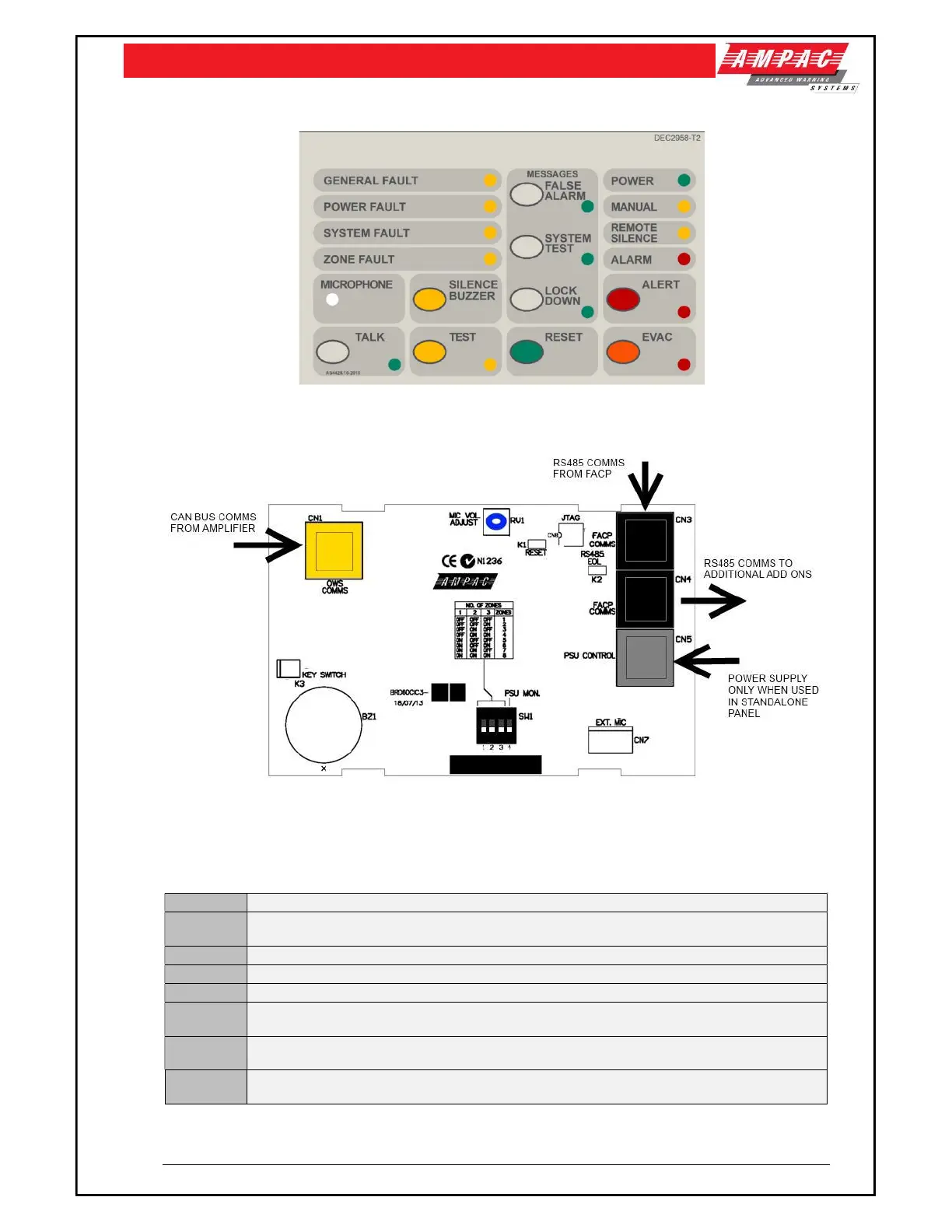 CN1 CAN BUS communication between the Front Panel Switch and Indicator Card and the Amplifiers