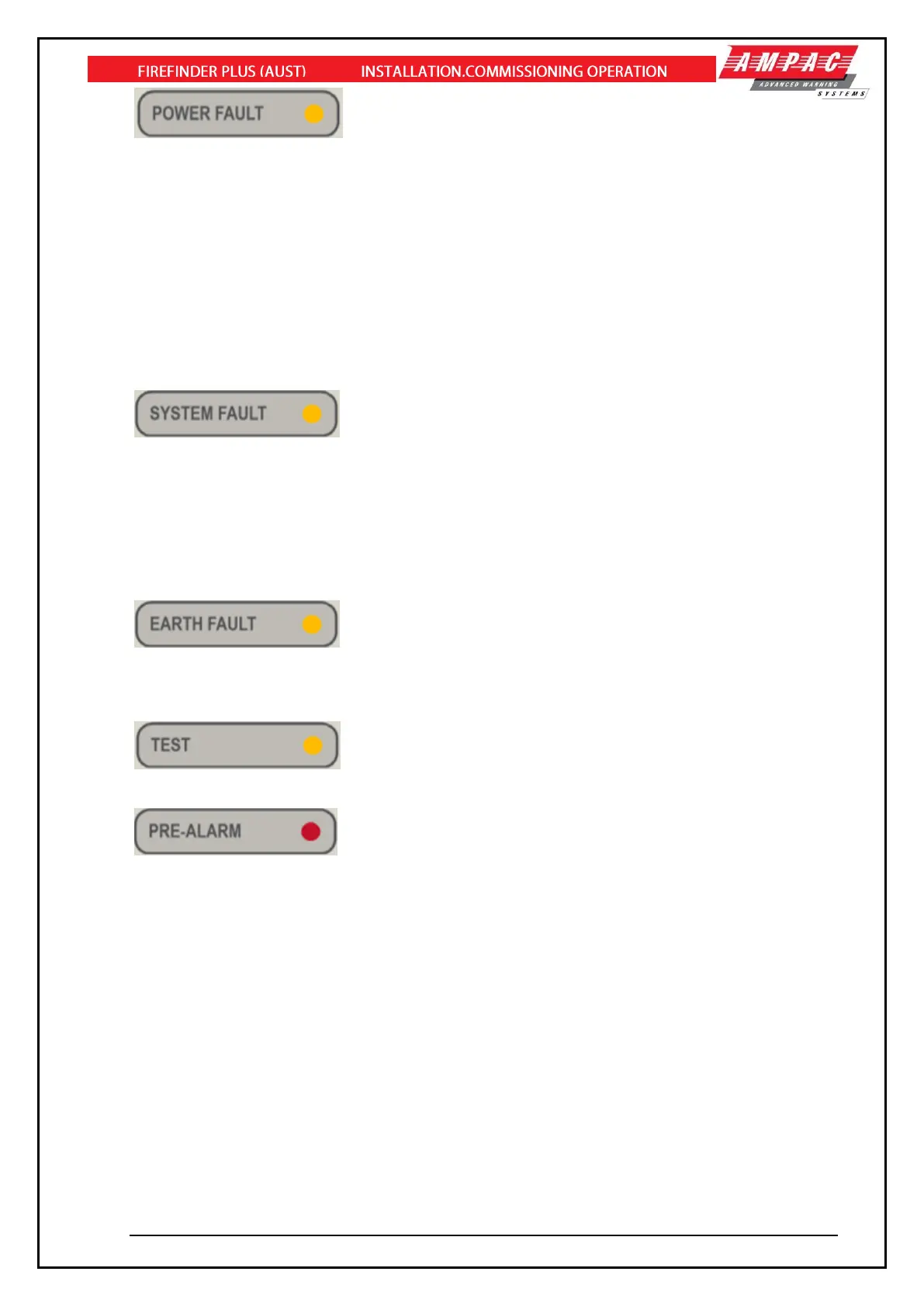 of the FACP and earth is less than 50ohm’s. The indicator is non latching and extinguishes when the