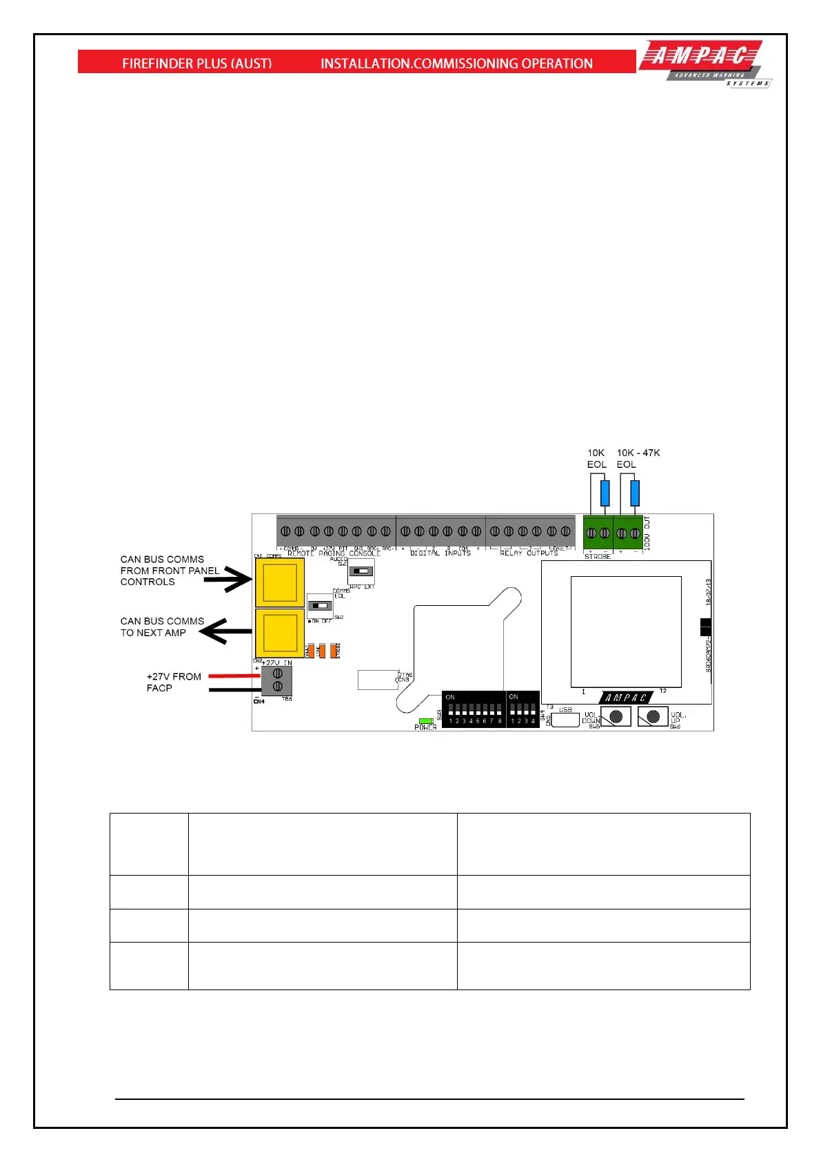 The amplifier communicates to the Front Panel Switch & Indicator via a CAN protocol, where input