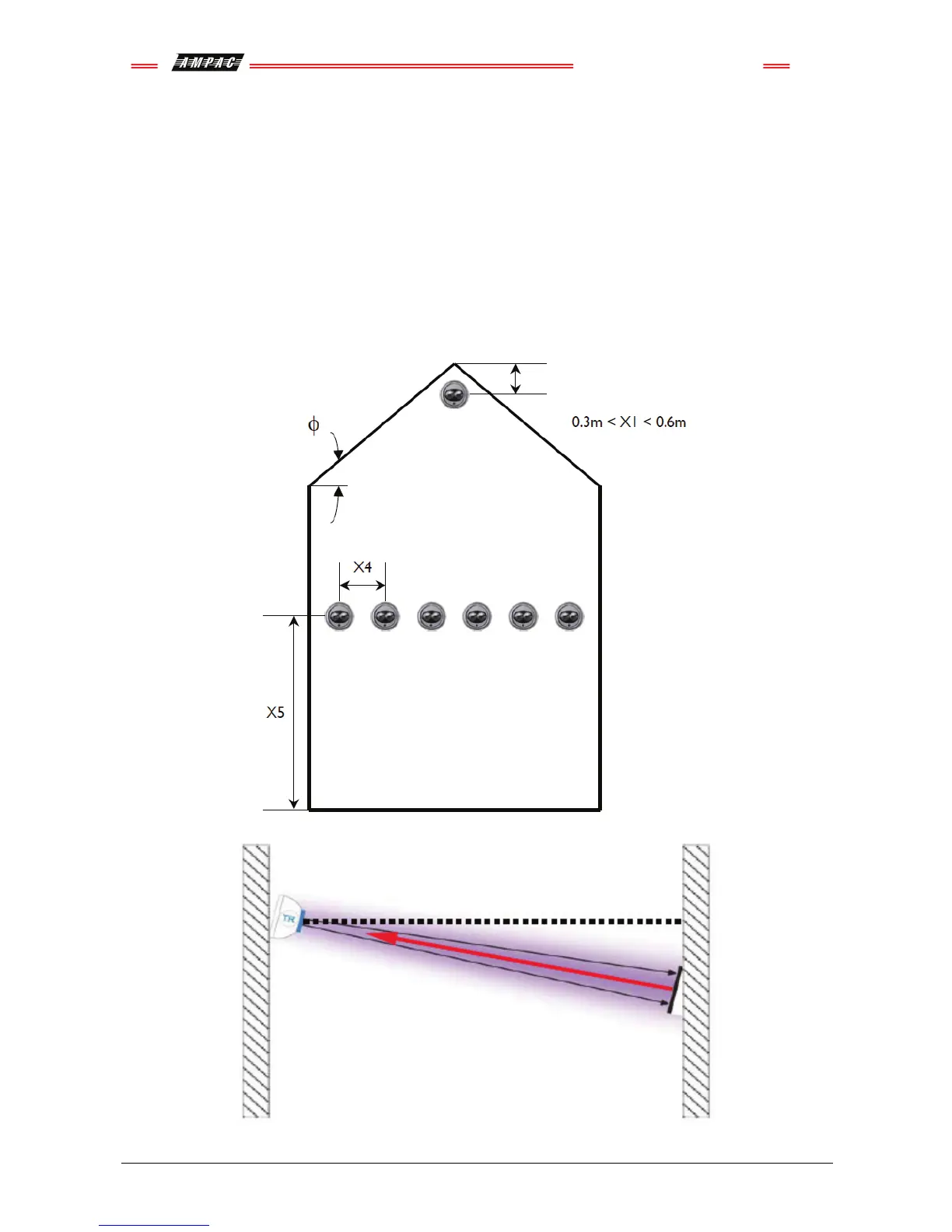 The spacing (X4) between Optical Beam Smoke Detectors is based on the narrowest potential width