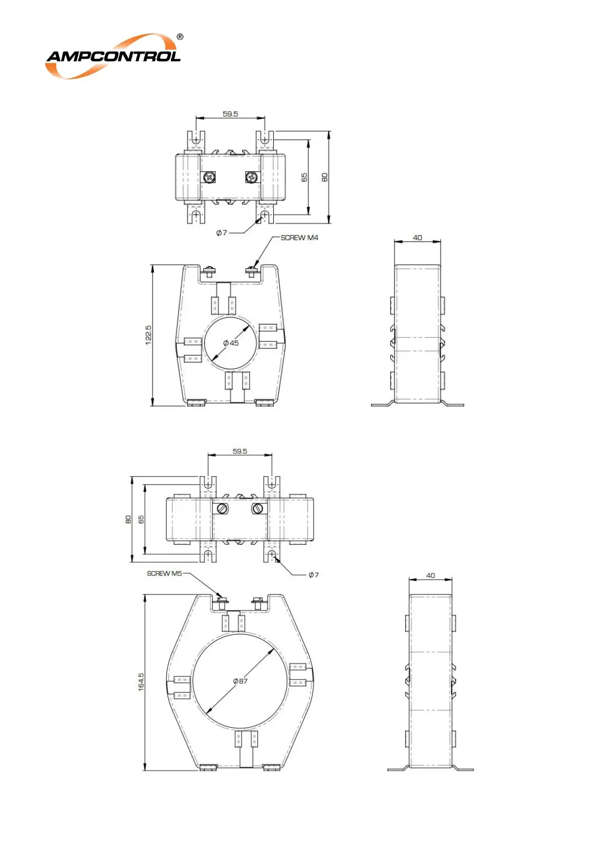 Ampcontrol IPD - Figure 5.8: Current Transformer 45 Mm I.D. (Part: 101272) Dimensional Details; Figure 5.9: Current Transformer 88 Mm I.D. (Part: 101703) Dimensional Details