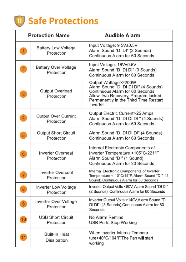 Inverter Output Volts <80V, Alarm Sound "DI DI"