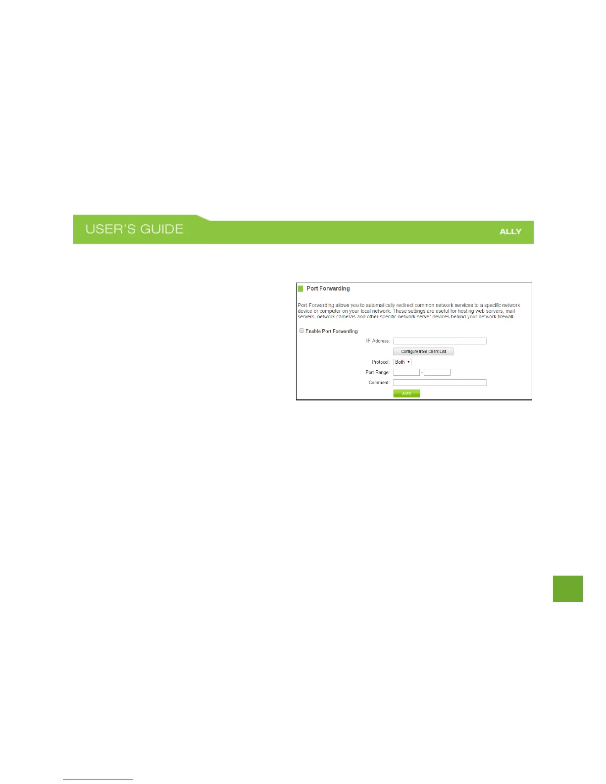 Port Range: Select a range of ports for the designated IP address that you wish to be forwarded.