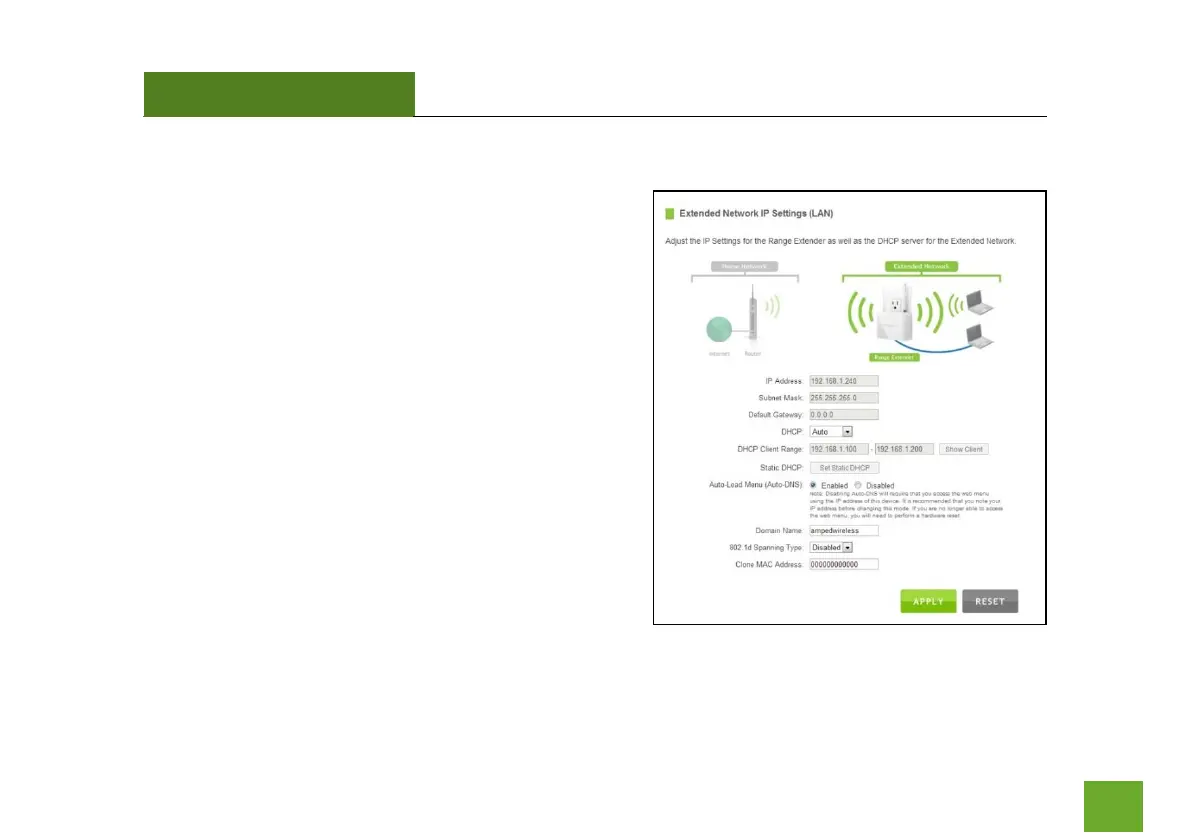 DHCP: The Range Extender includes a complex AUTO DHCP