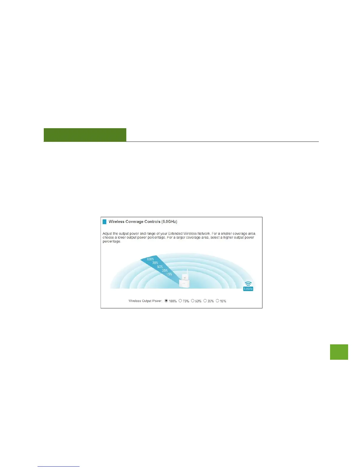 Adjust the output power of the Range Extender to control the coverage distance of your 5.0GHz Extended
